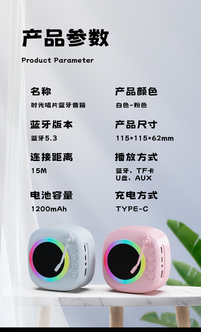 品牌: 其他 适用场景: 车载,桌面,健身运动,户外,居家,移动便 上市时间: 2025 连接方式: 蓝牙连接 频响范围: 100HZ-20KHZ 信噪比: ≥70db 喇叭数: 1 有效距离: 15 箱体材质: ABS 外观尺寸: 115*115*62