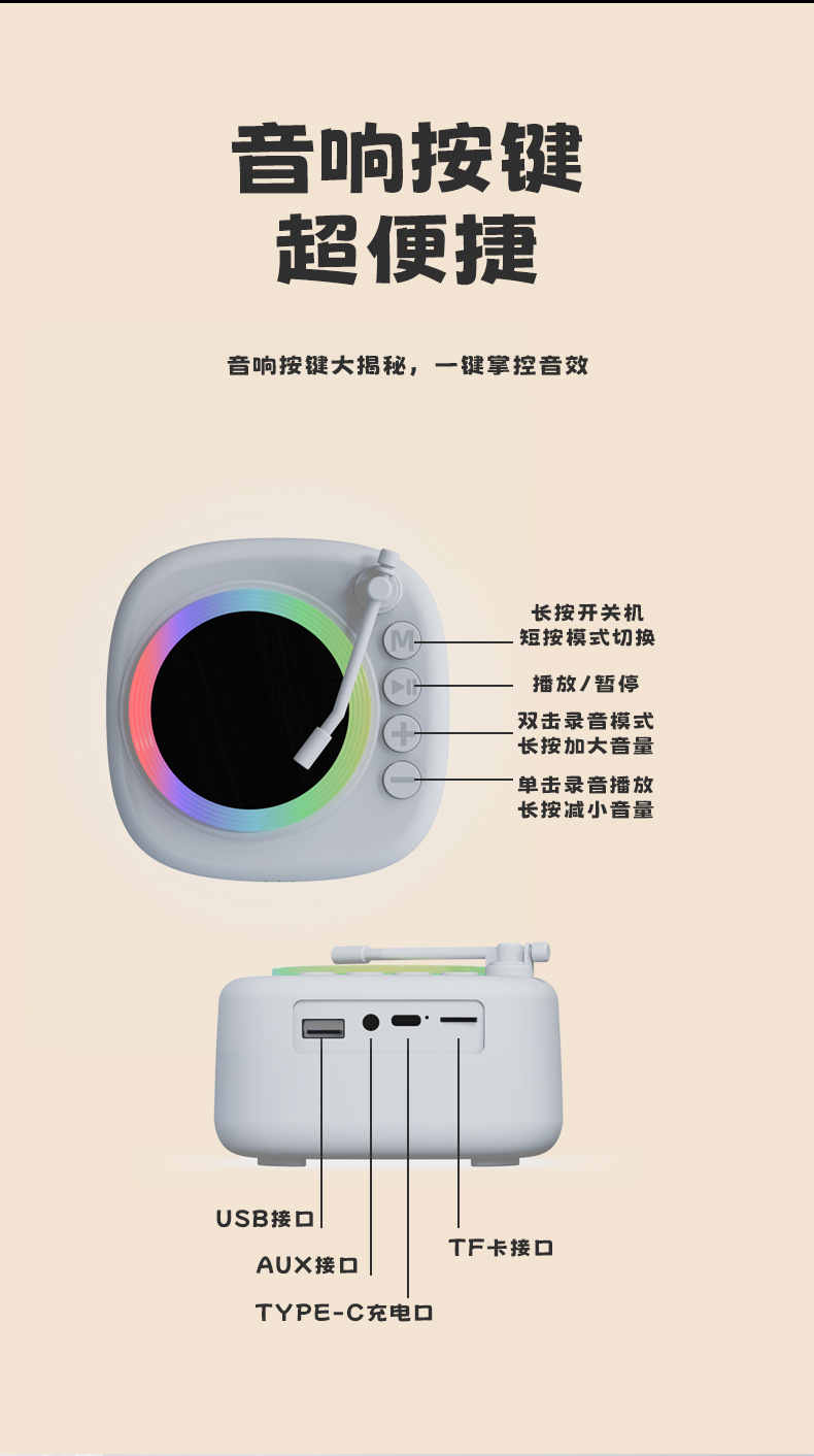 复古唱片蓝牙音箱家用桌面摆件音箱插卡录音氛围灯音响生日礼物 投诉