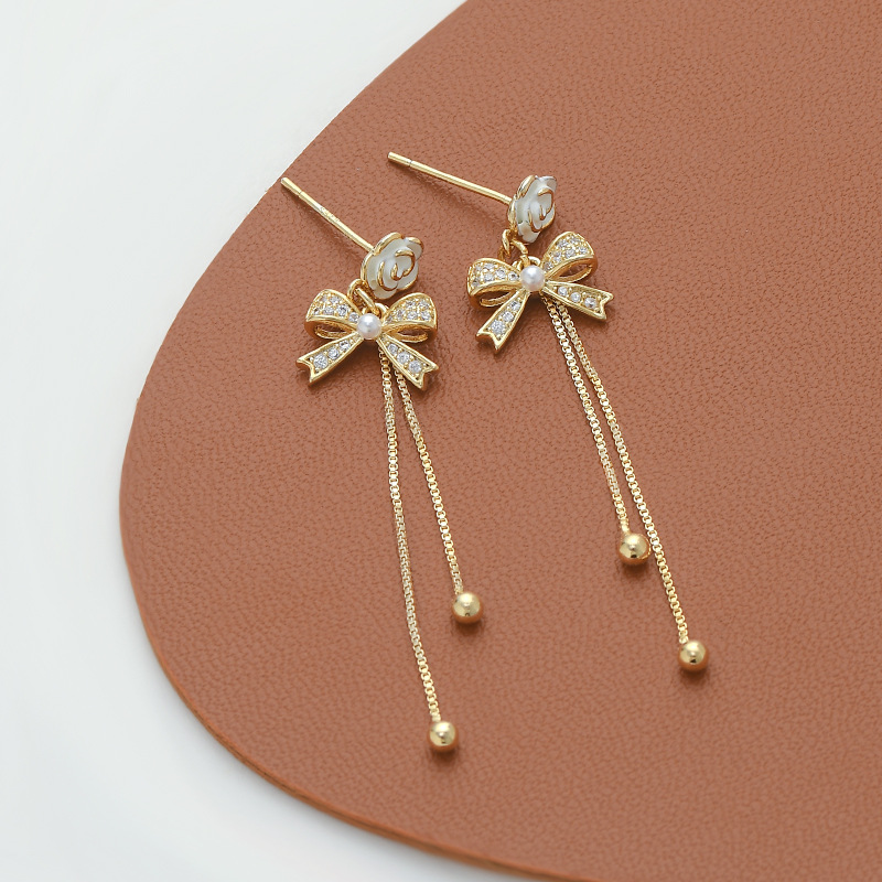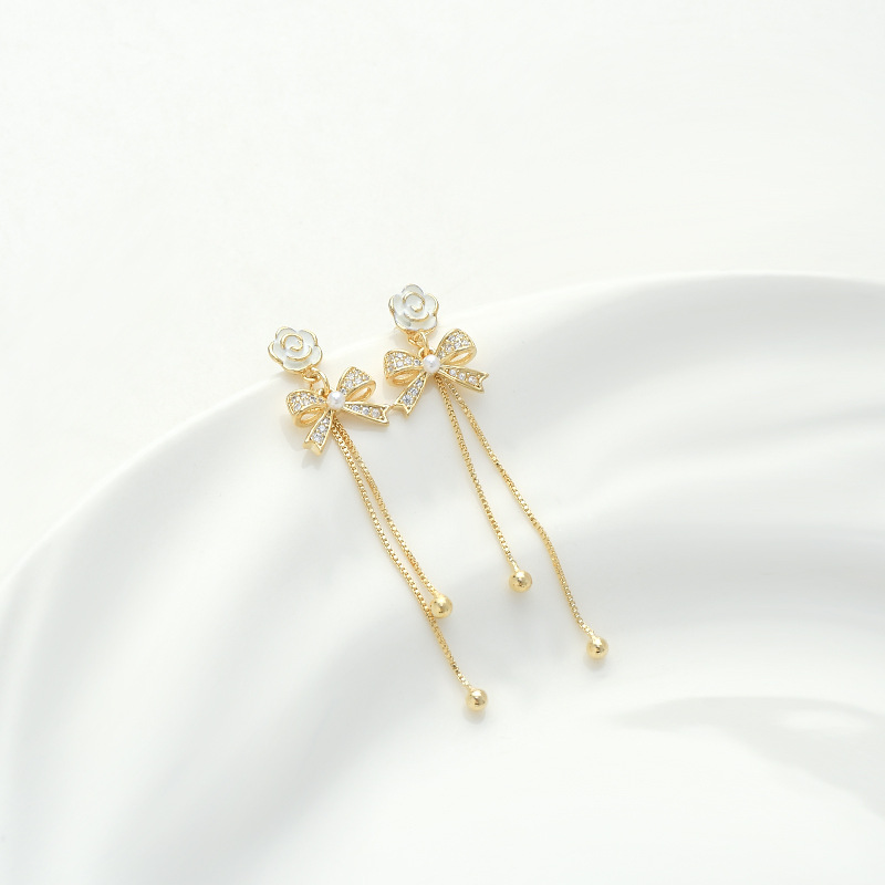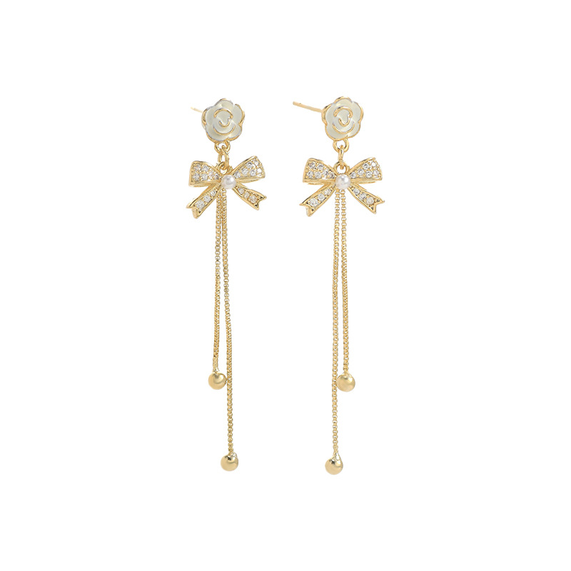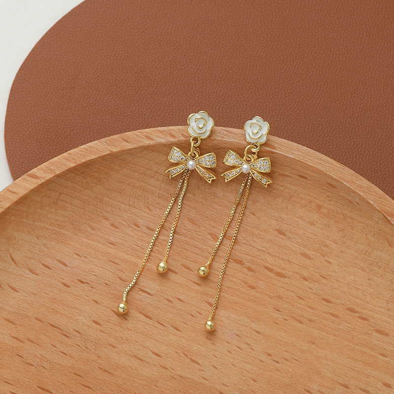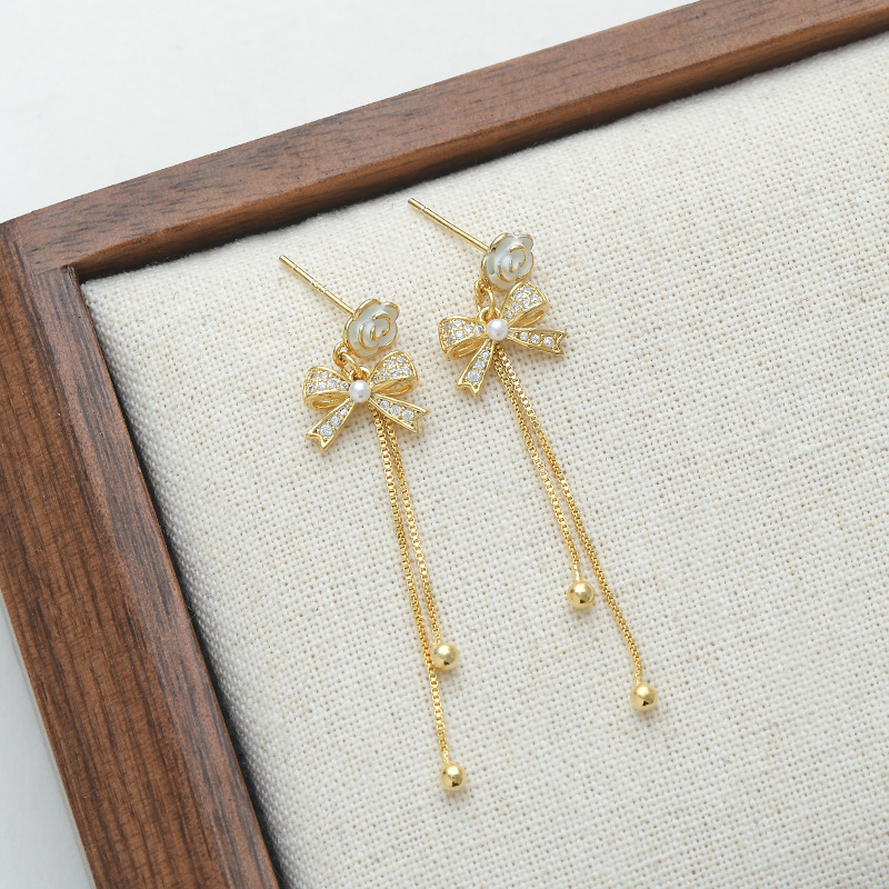 韩国东大门气质耳钉女S925银针复古法式珍珠山茶花瓣耳饰流苏耳环 English | 投诉