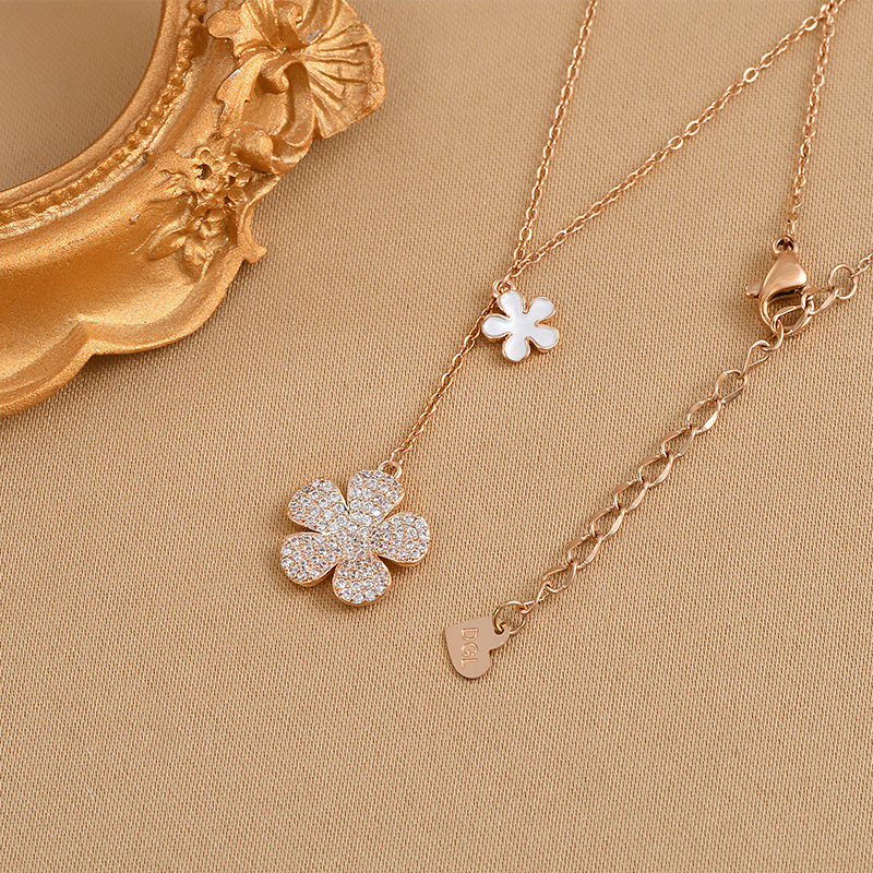 真金电镀微镶锆石五瓣花流苏项链女小众设计感气质锁骨链百搭颈链 English | 投诉