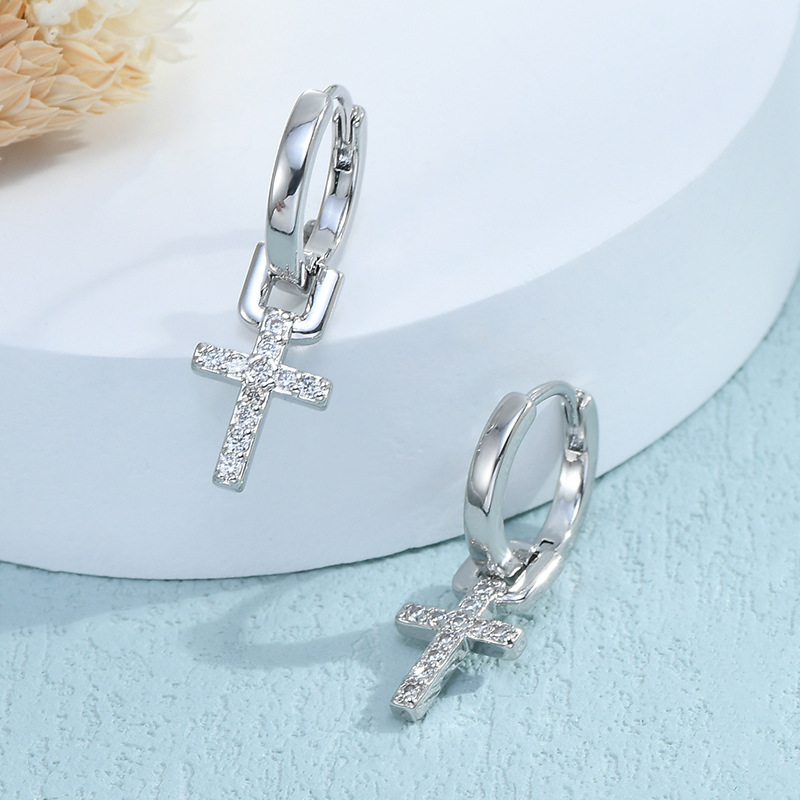 跨境货源wish亚马逊热卖气质耳环女高级感锆石十字架耳饰百搭耳扣
