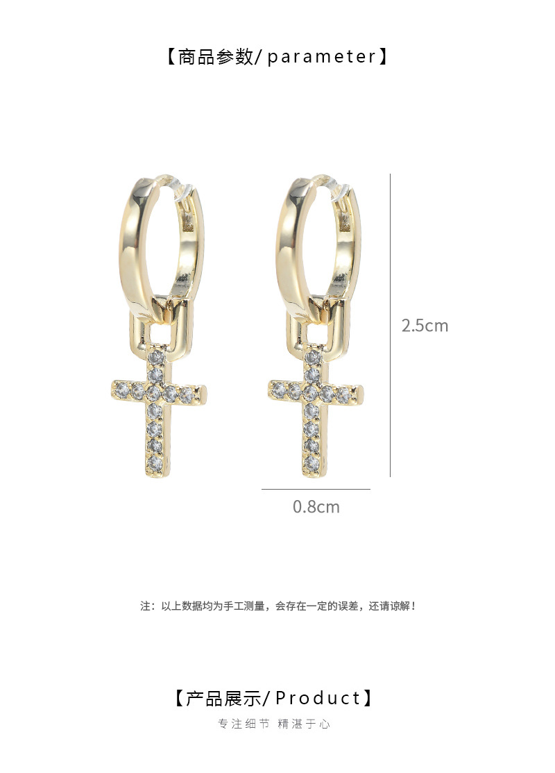 跨境货源wish亚马逊热卖气质耳环女高级感锆石十字架耳饰百搭耳扣 English | 投诉