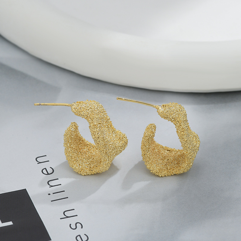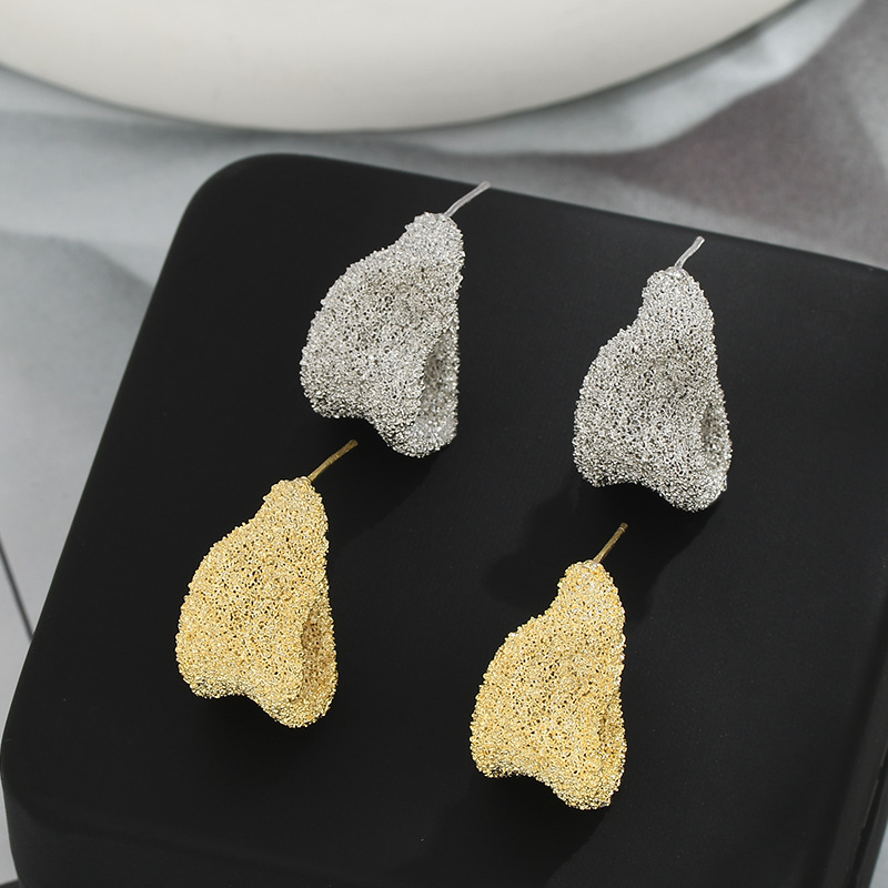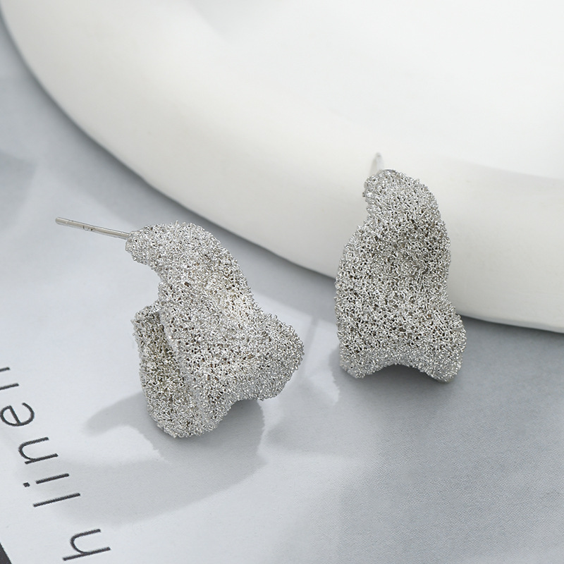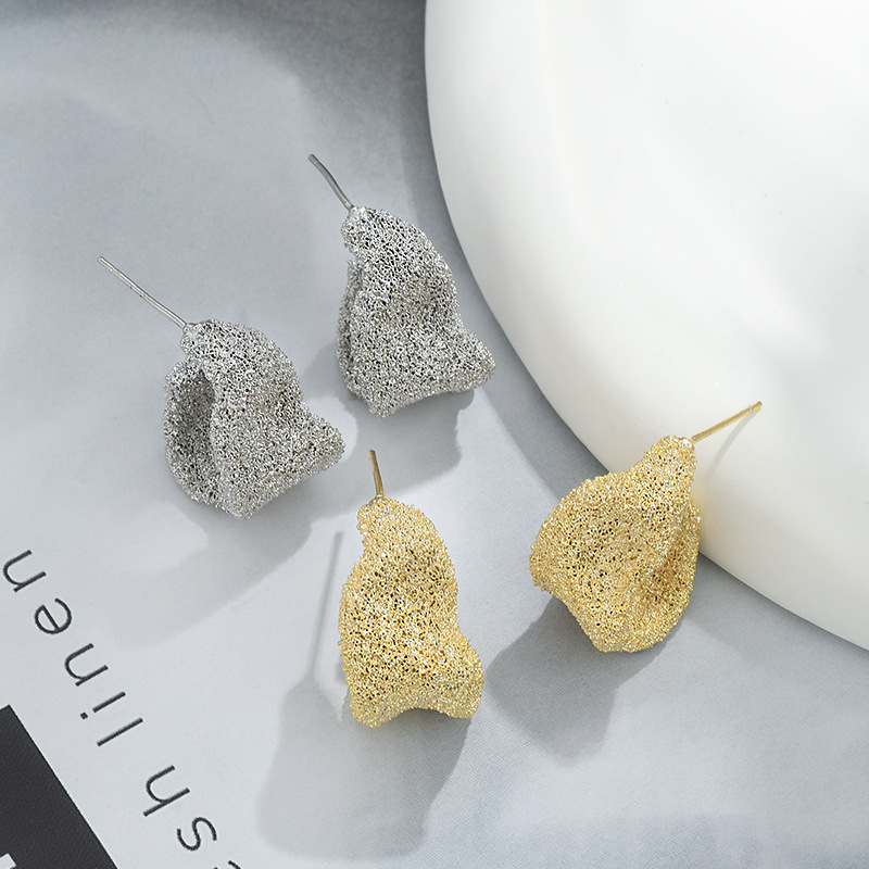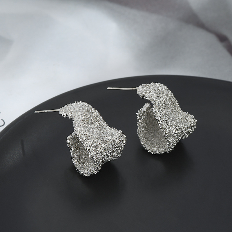 S925银针小众设计感不规则金属褶皱耳钉女欧美个性耳环时尚耳饰女 English | 投诉