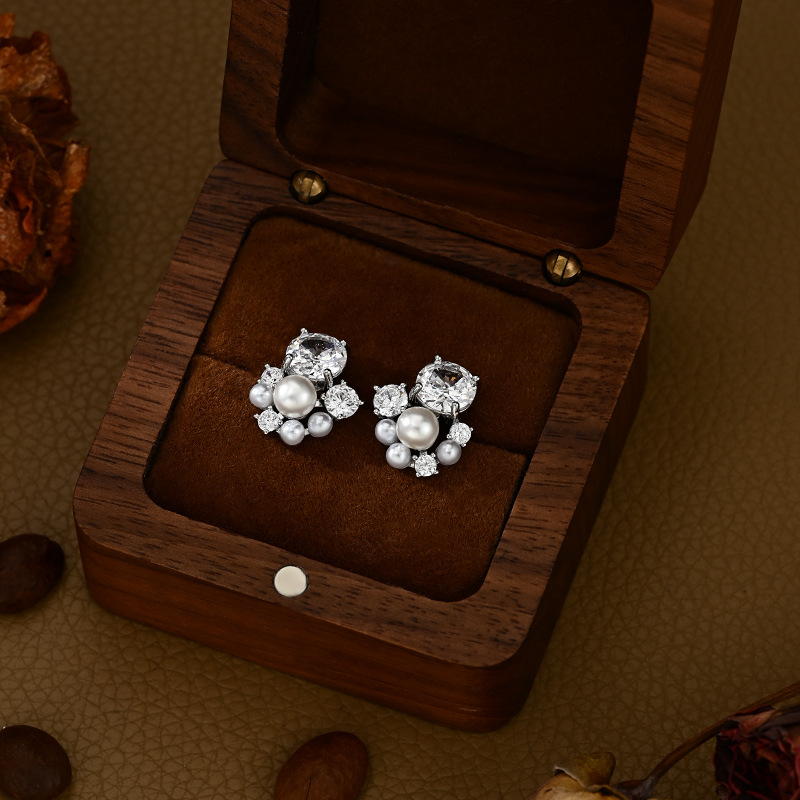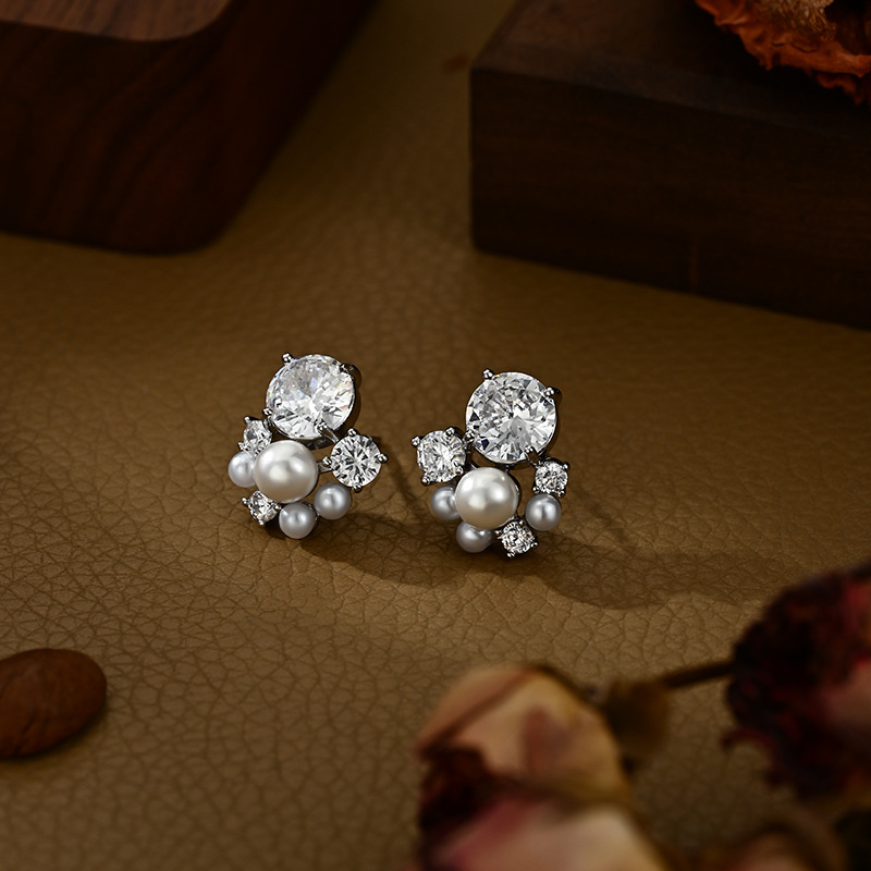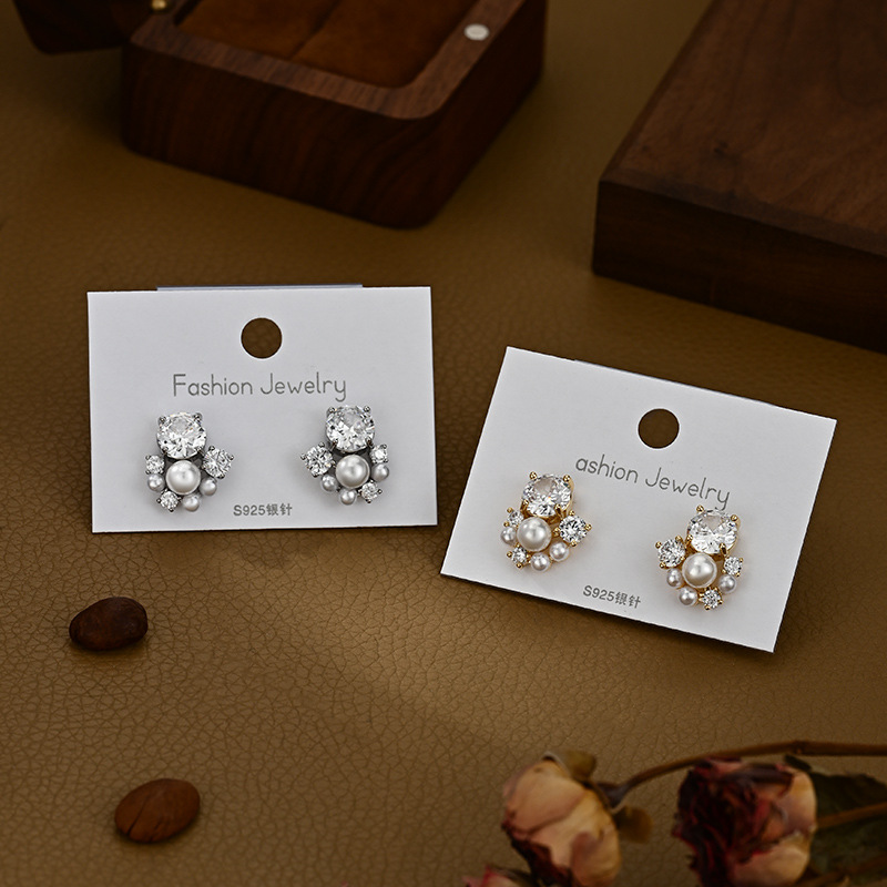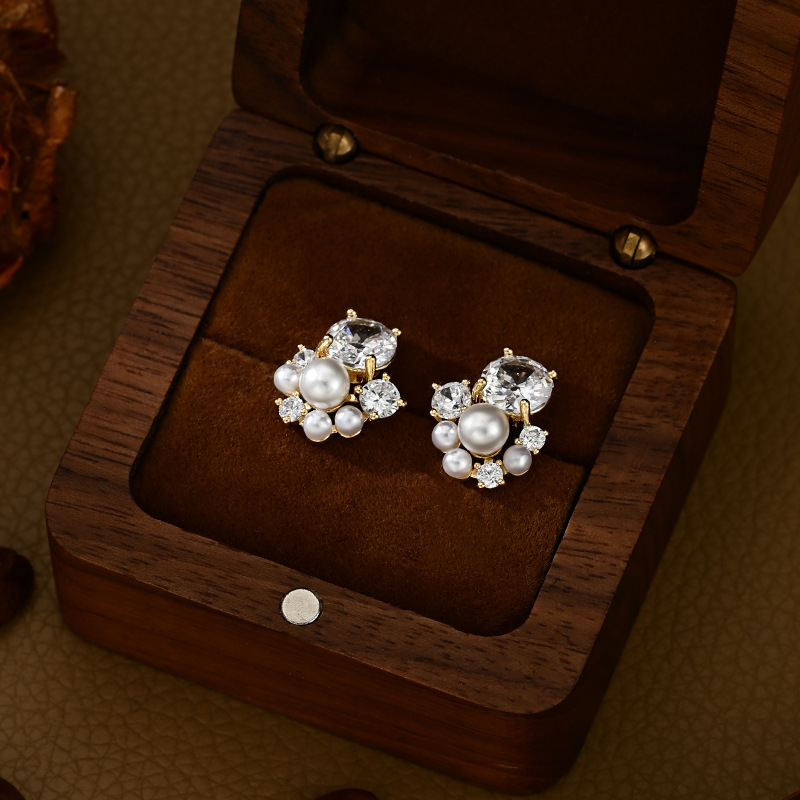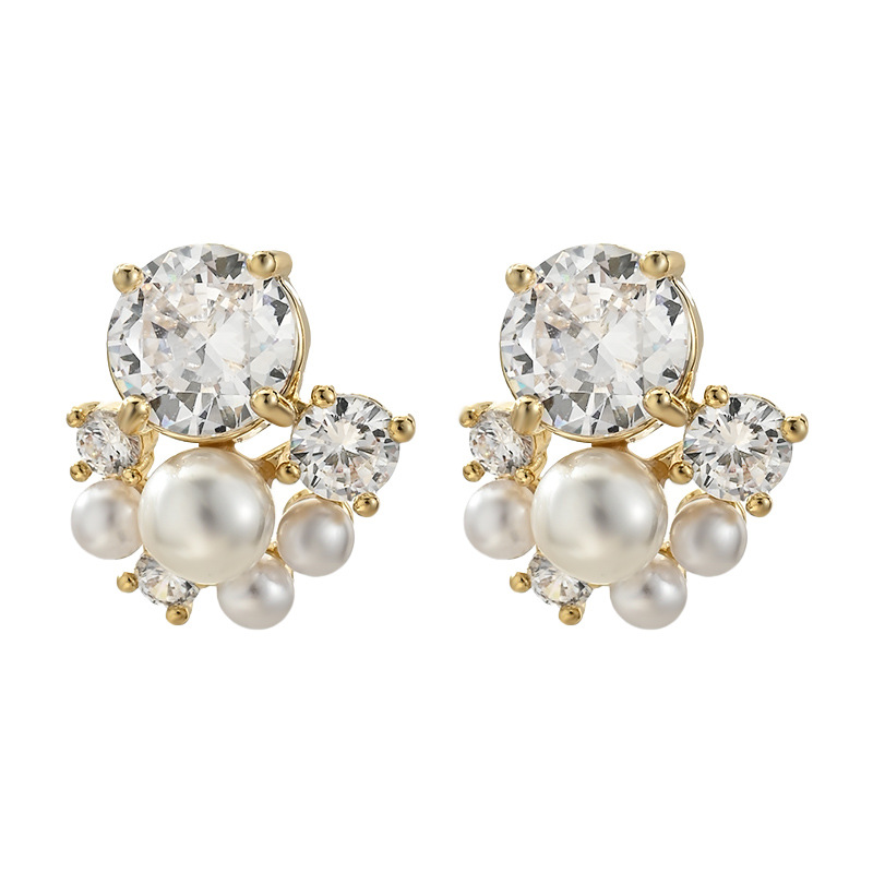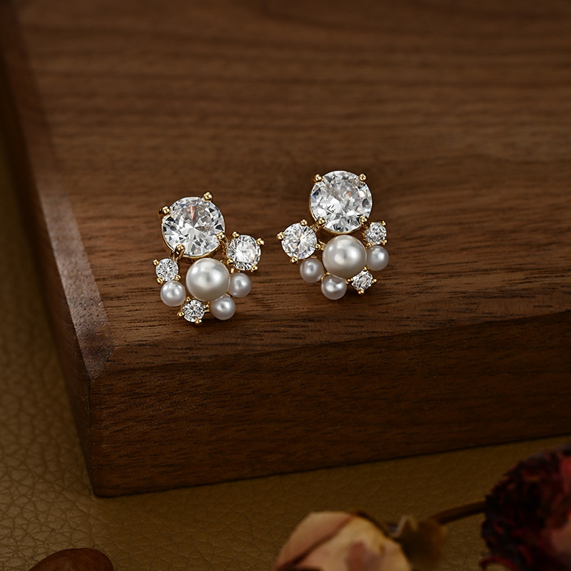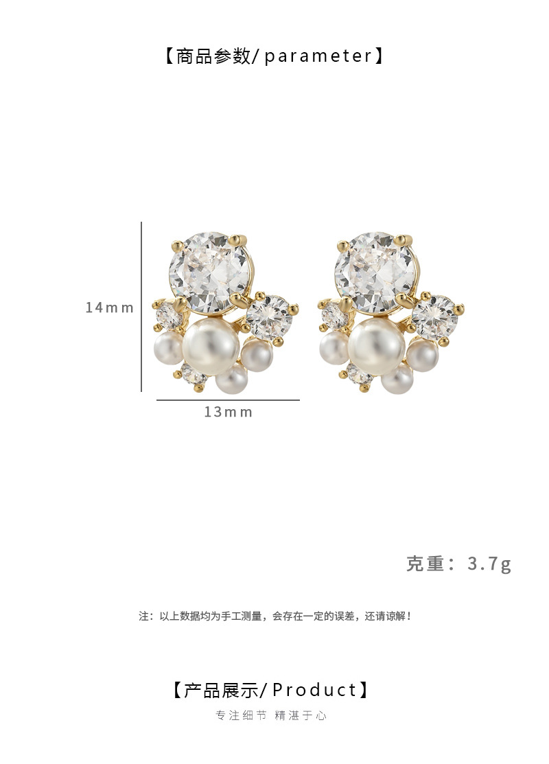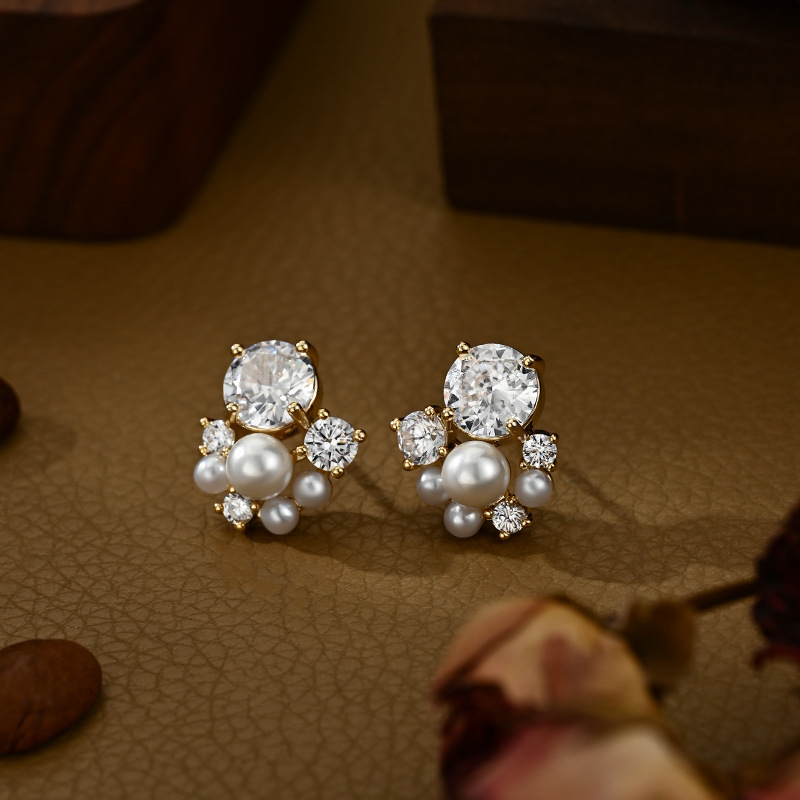 铜镀真金微镶锆石百搭设计感珍珠耳钉时尚日常风端庄气质款耳饰品 English | 投诉