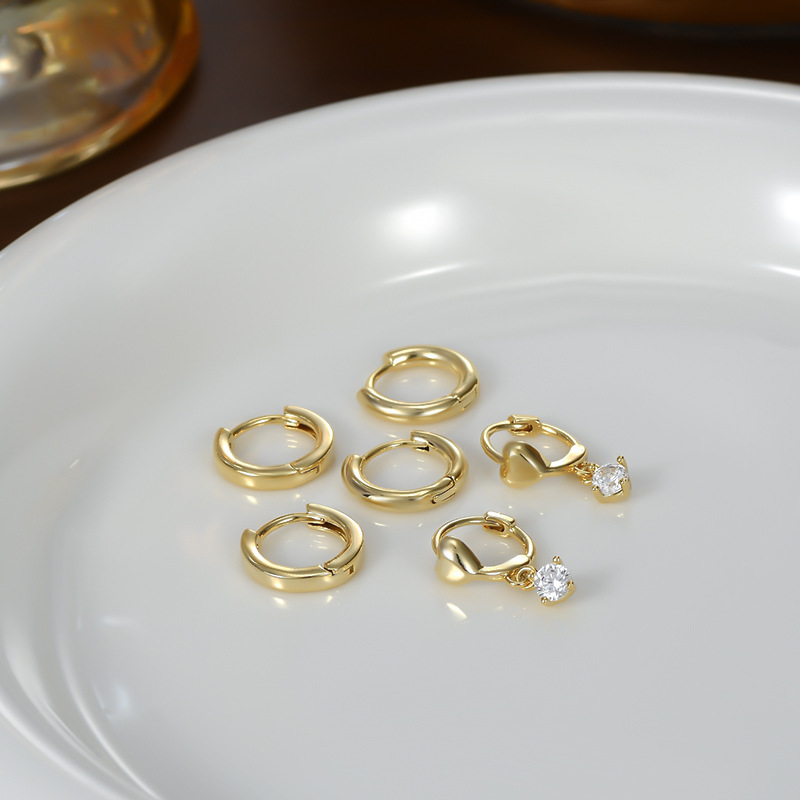 真金电镀一卡三对套装耳环女简约百搭几何C形耳饰品ins风学生耳扣 English | 投诉