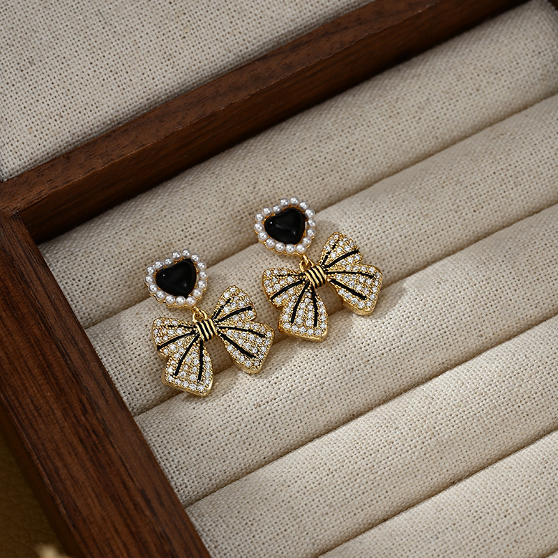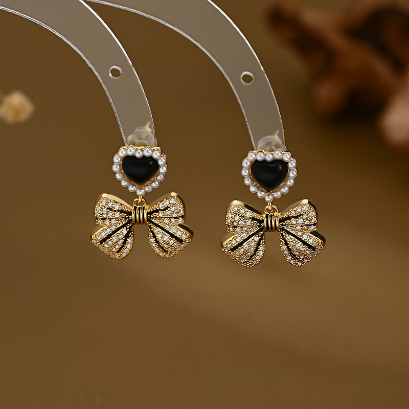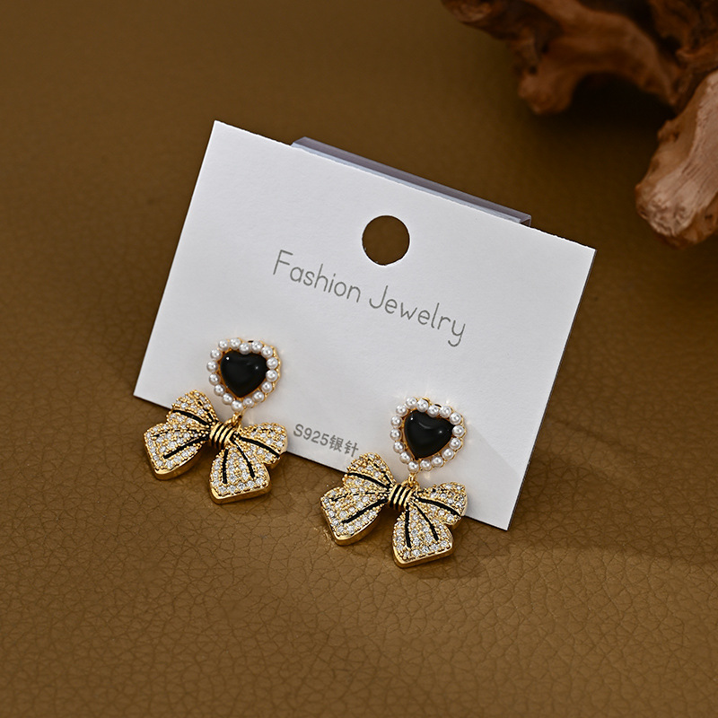 S925银针韩国高级感珍珠蝴蝶结耳环 ins小众设计百搭网红耳钉耳饰 English | 投诉