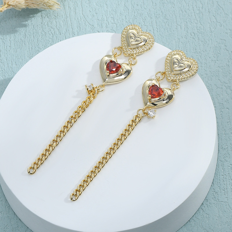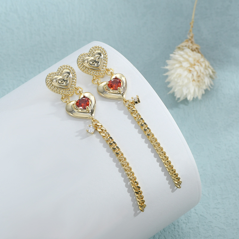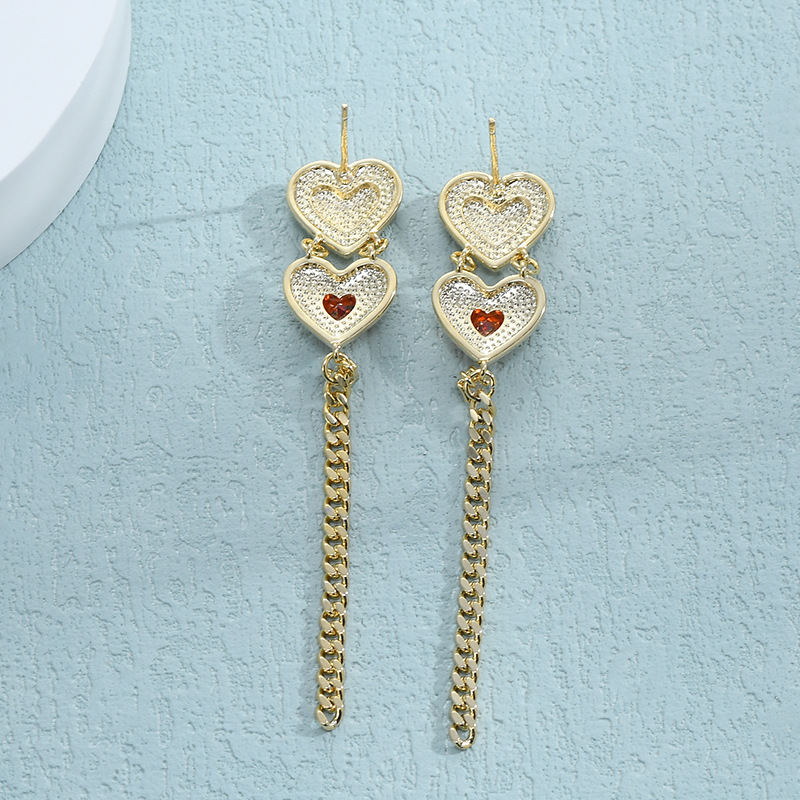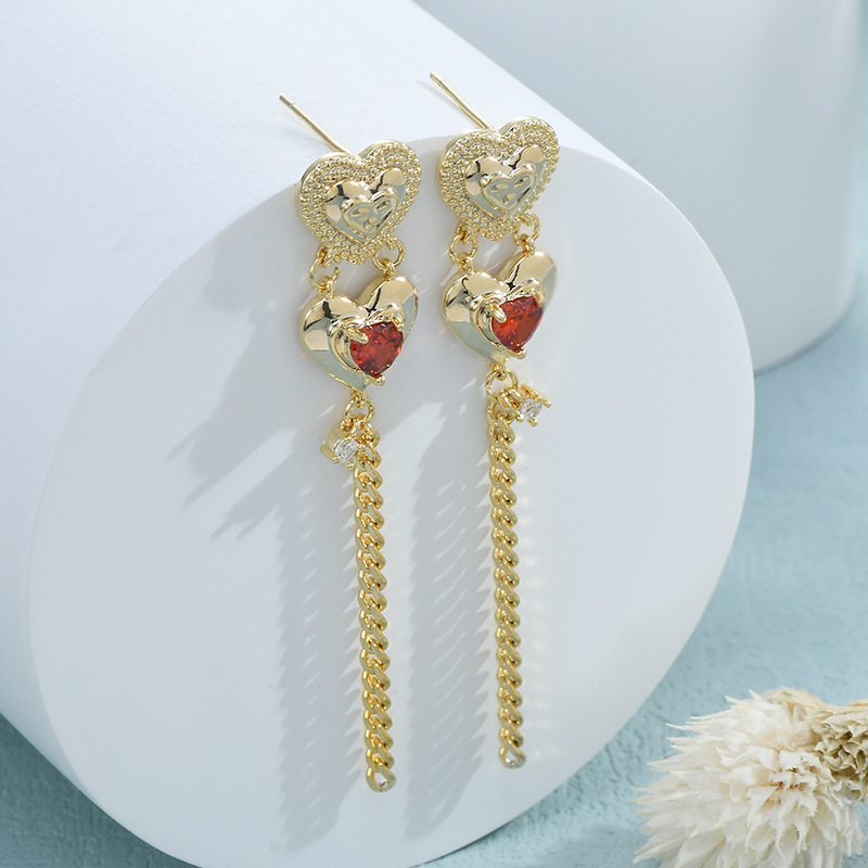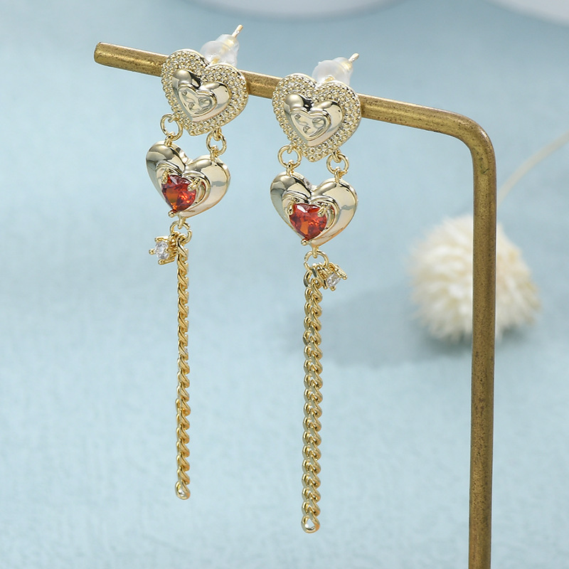 跨境货源亚马逊热卖气质耳环女S925银针高级感桃心流苏耳钉耳饰品