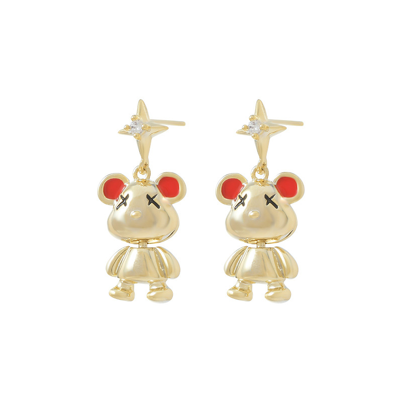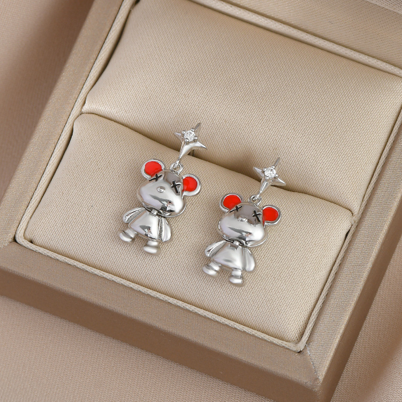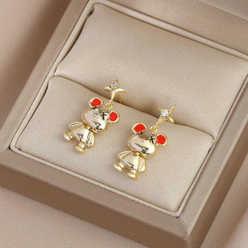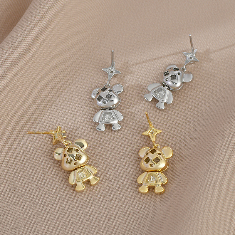 秋冬新款气质耳钉女S925银针高级感小熊耳饰韩版时尚学生耳坠批发 English | 投诉