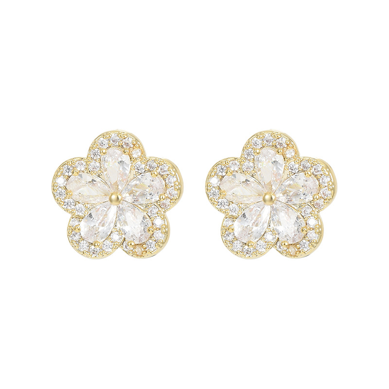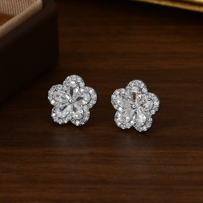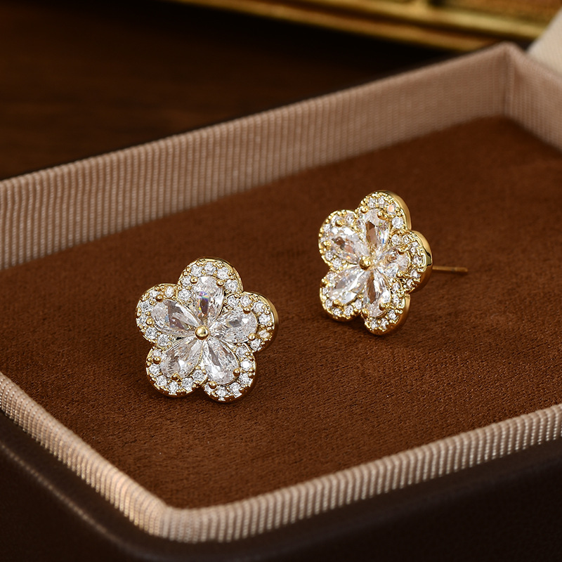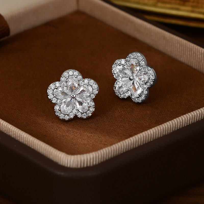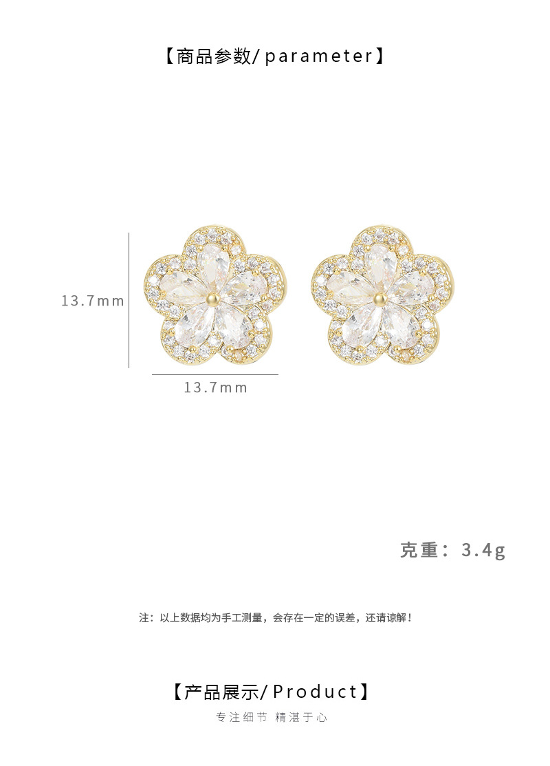 S925银针韩国时尚设计感锆石耳钉女精致轻奢风五瓣花耳钉网红耳环 English | 投诉