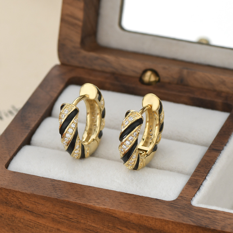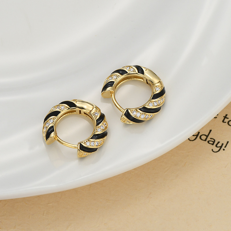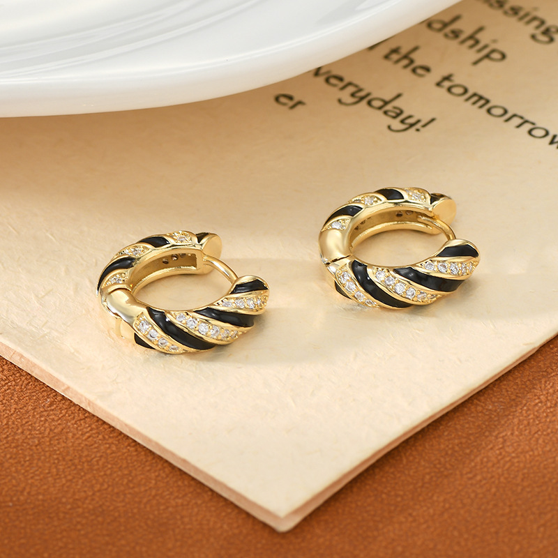 韩国小众设计感麻花耳圈2024年新款黑色滴油耳环精致百搭耳扣批发 English | 投诉