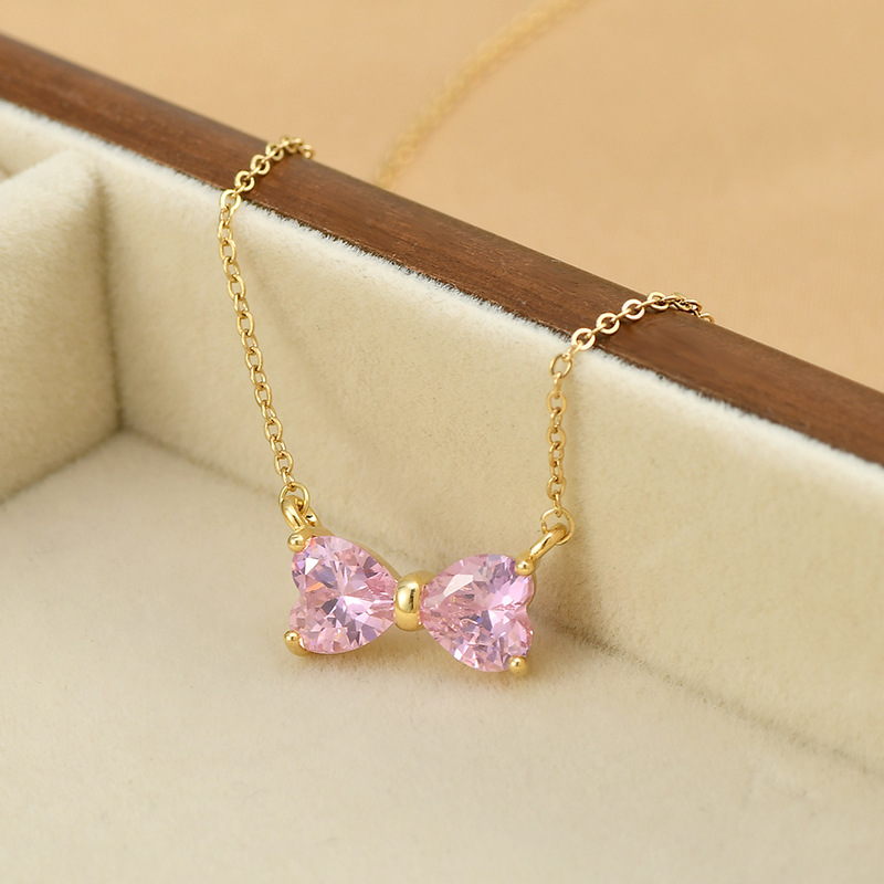 真金电镀镶锆石气质锁骨链女小众设计感蝴蝶结项链精致甜美颈链潮