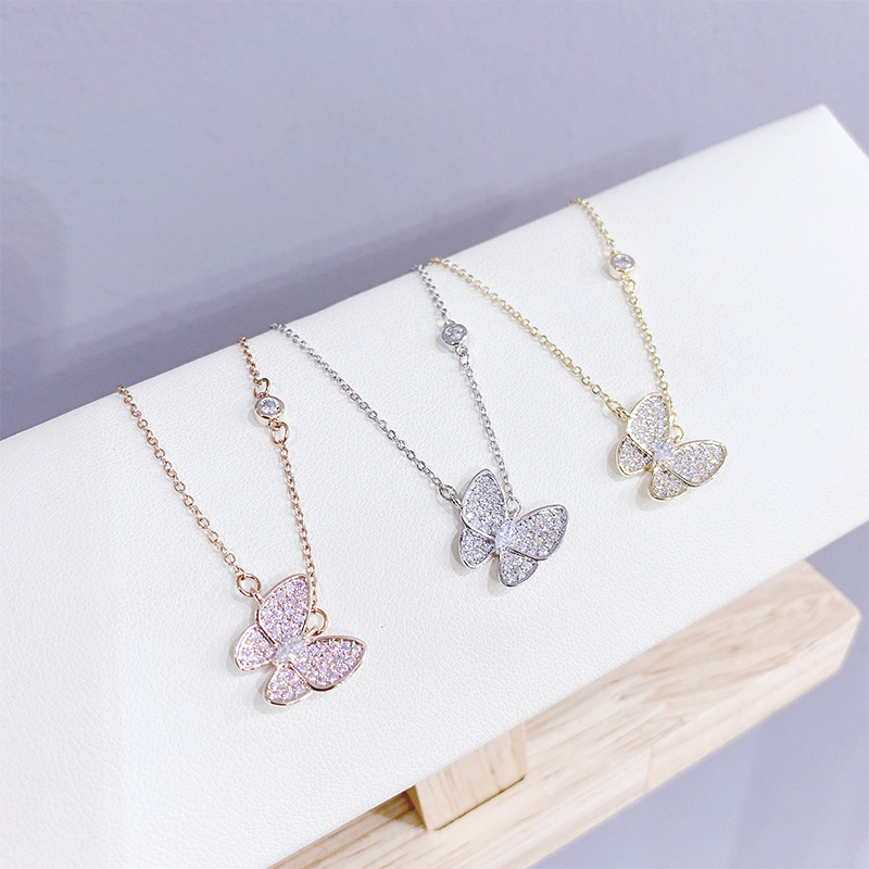 2023新款蝴蝶项链女欧美时尚微镶锆石锁骨链首饰项链饰品源头工厂 English | 投诉
