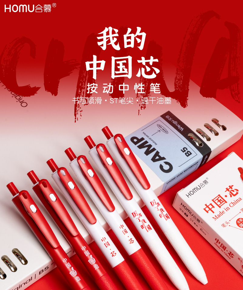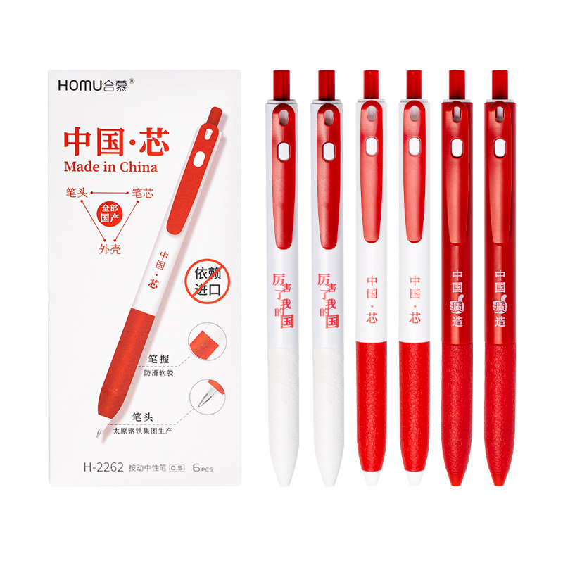 合慕中国芯按动中性笔学生考试笔记刷题笔ST尖速干大容量按动黑笔 English | 投诉
