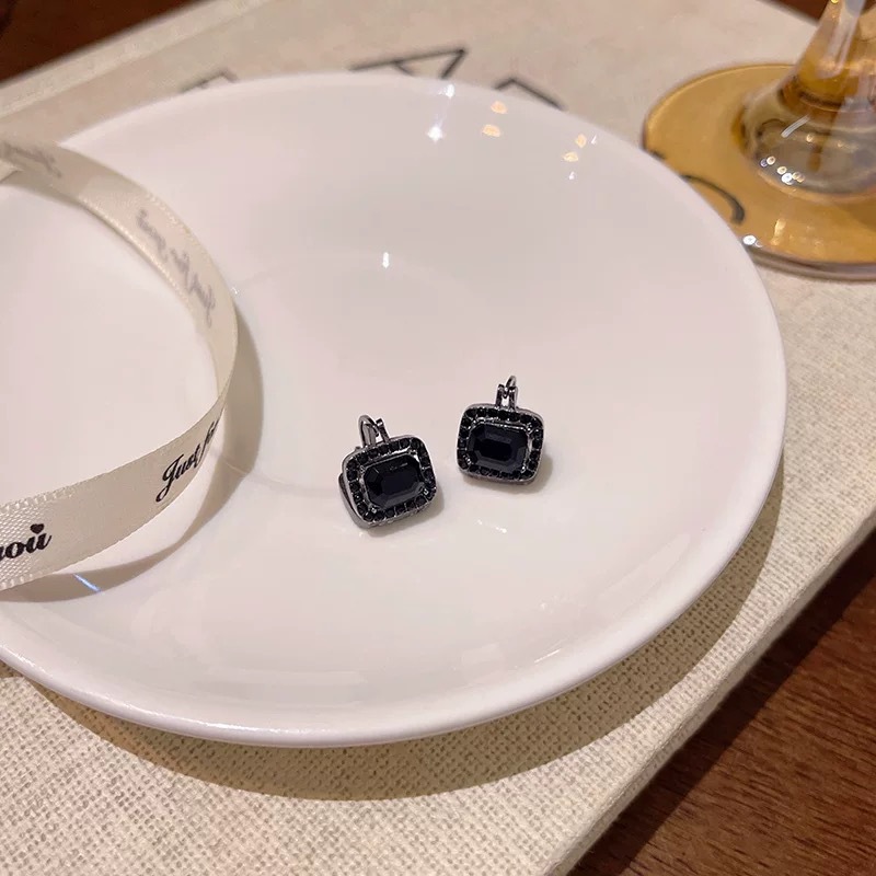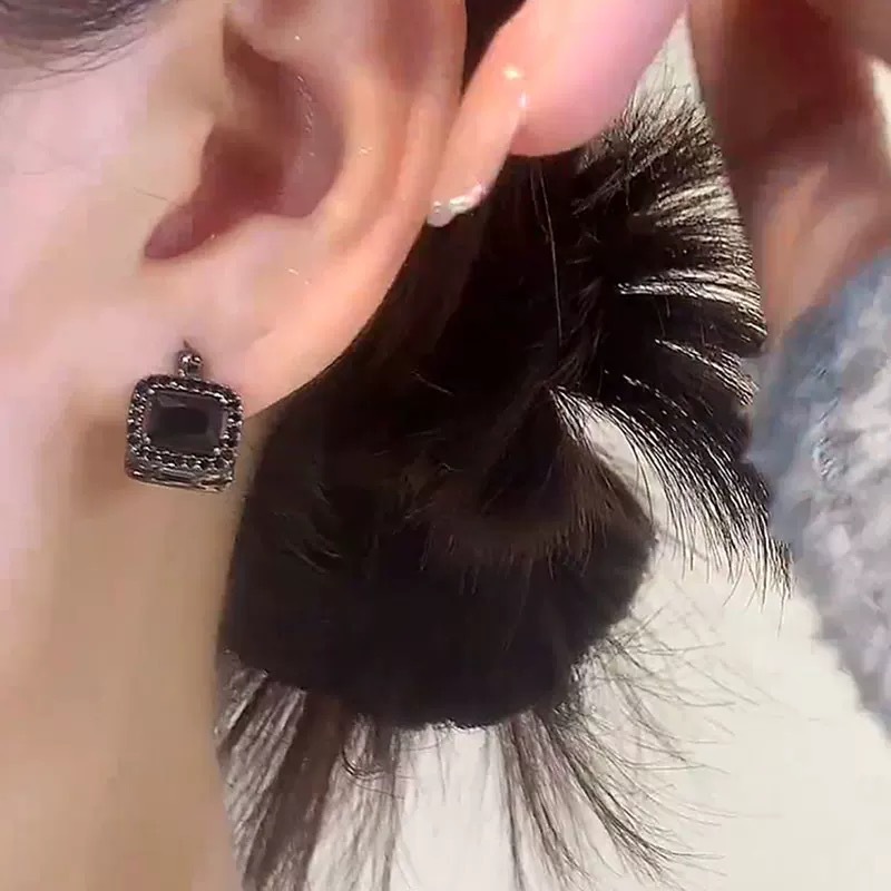 轻奢几何黑色方形锆石个性小众耳扣冷淡风耳饰复古高级感时髦耳环 English | 投诉