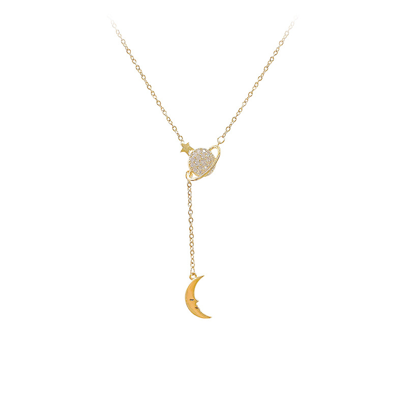 简约梦幻星球吊坠项链个性气质日韩国镶钻颈链月亮锁骨链首饰饰品 English | 投诉