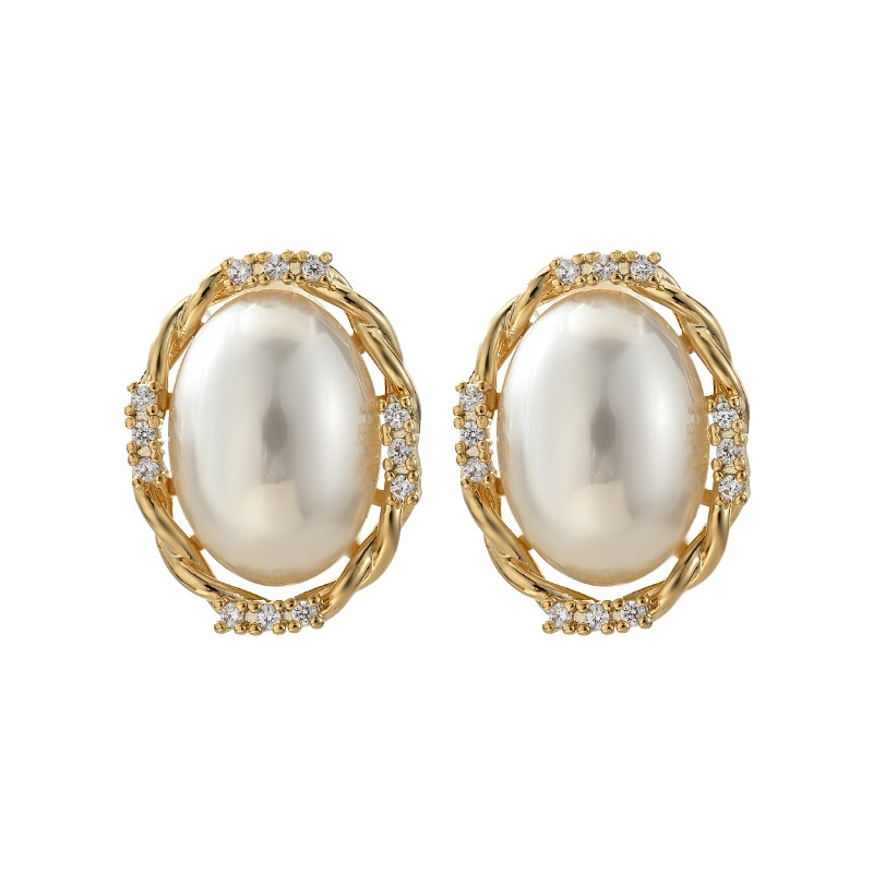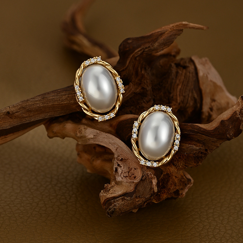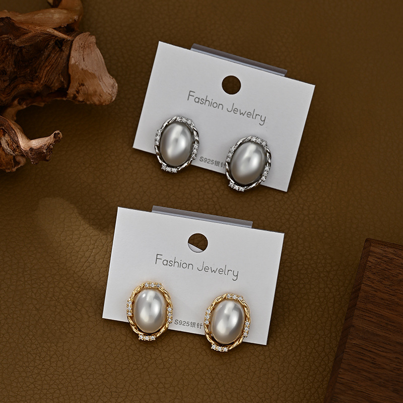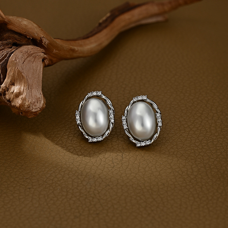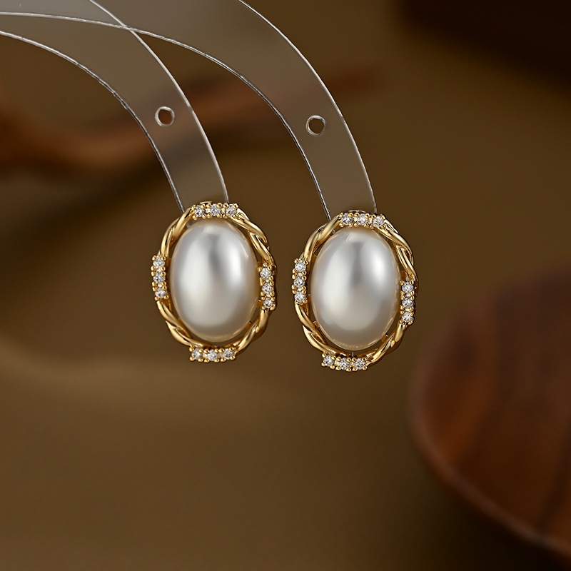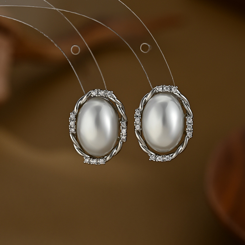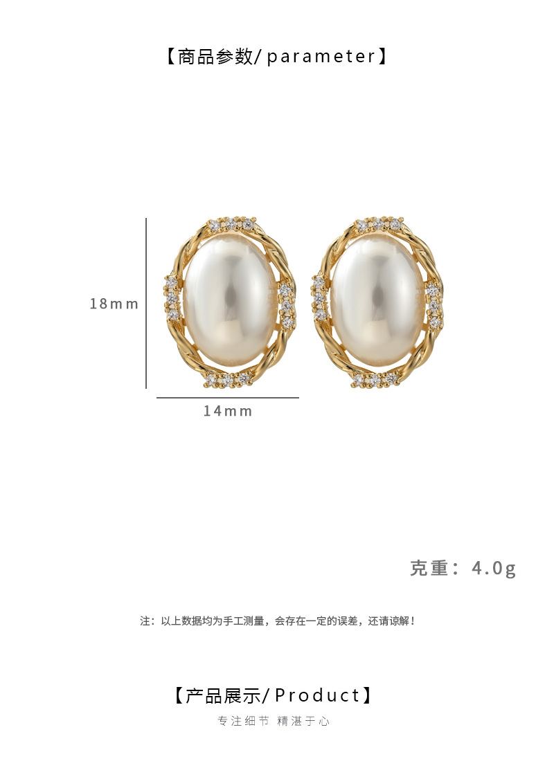 端庄风小众设计感珍珠耳钉椭圆形几何耳饰品日常通勤风必备款气质 English | 投诉