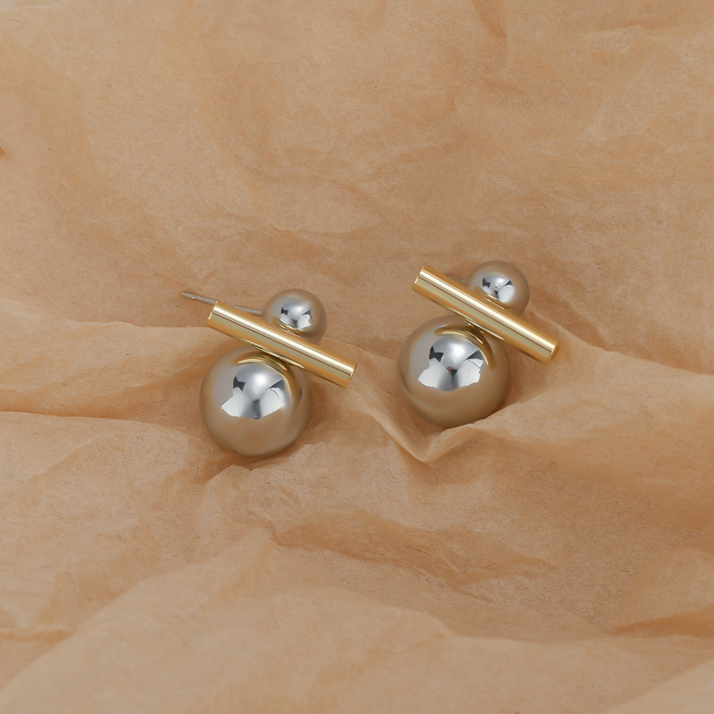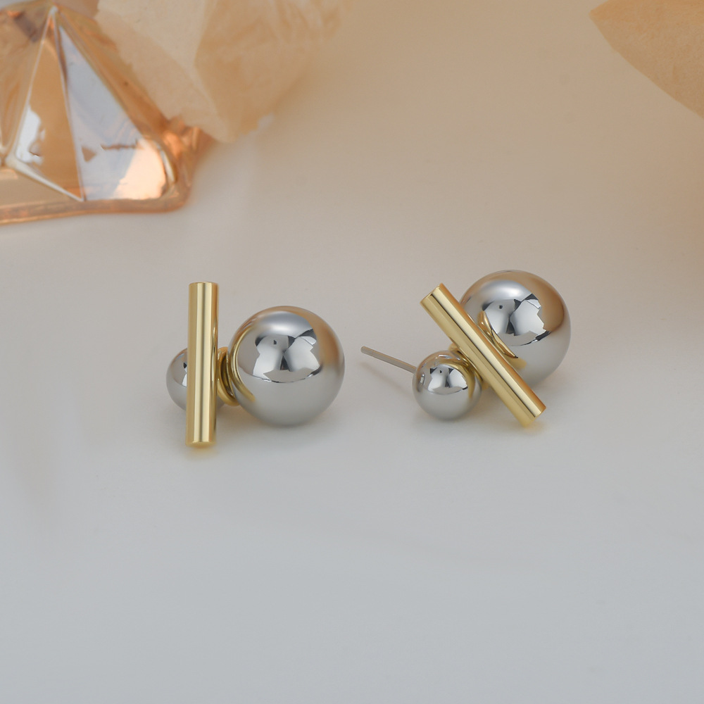 抖音直播热卖S925银针双拼色小众设计感大小球耳环女精致网红耳钉 English | 投诉