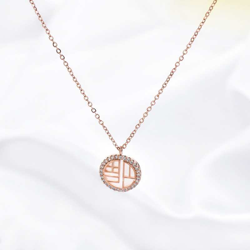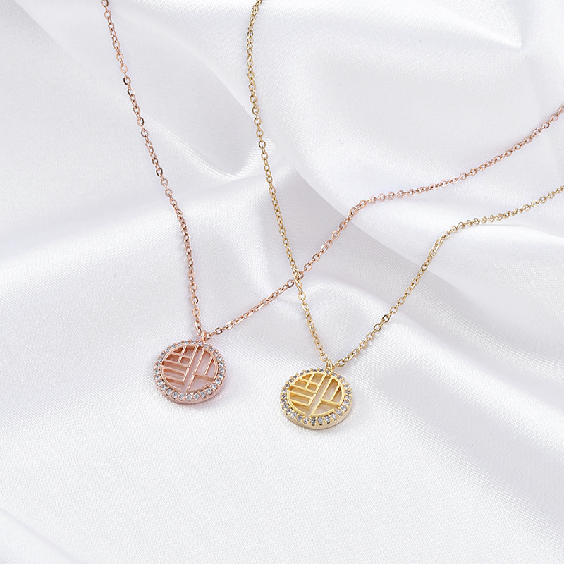 真金电镀气质锁骨链女小众设计感锆石福字项链个性时尚网红颈链 English | 投诉