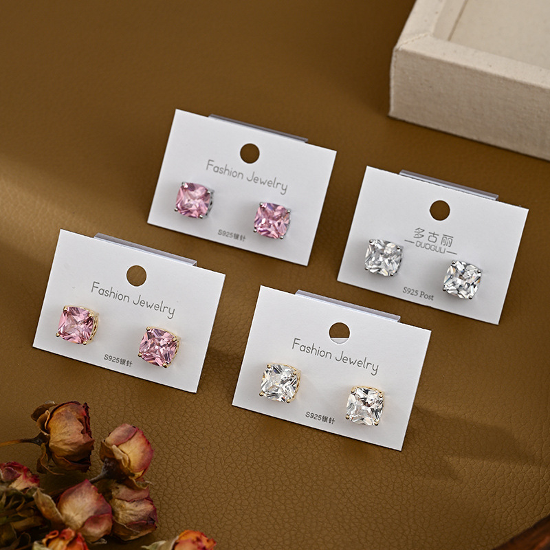 S925银针东大门个性耳钉女小众设计感几何方糖耳饰通勤风时尚极简 English | 投诉