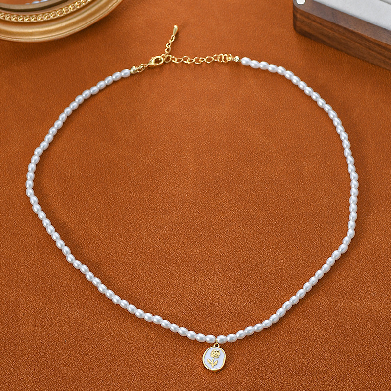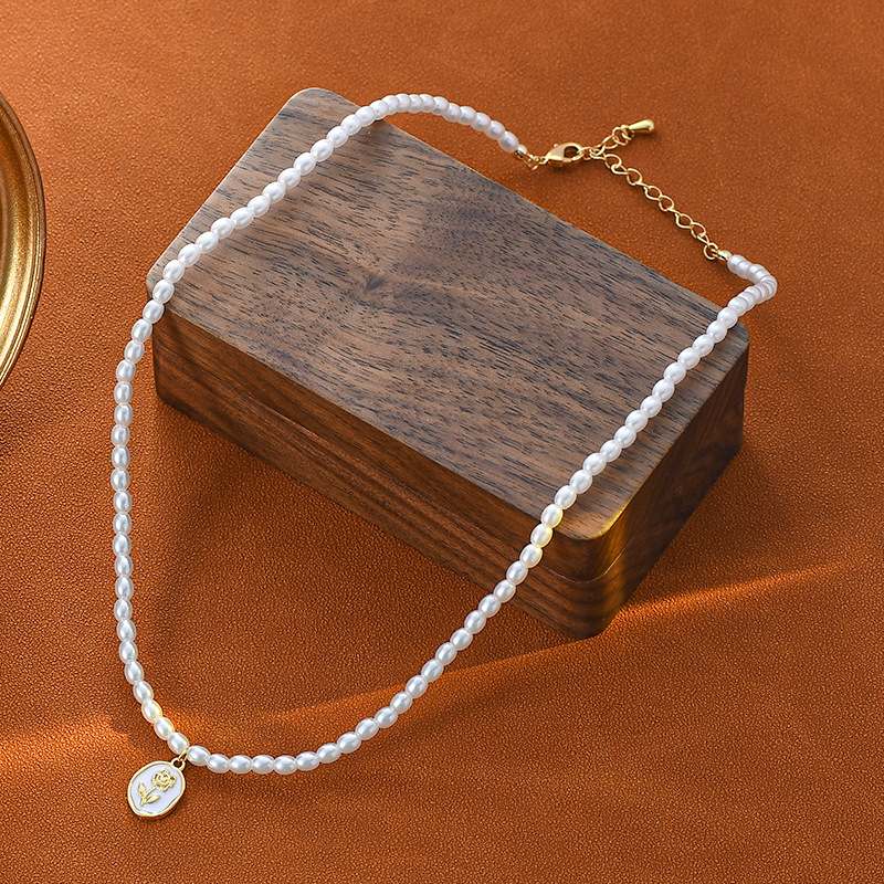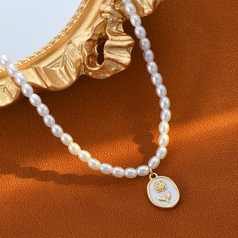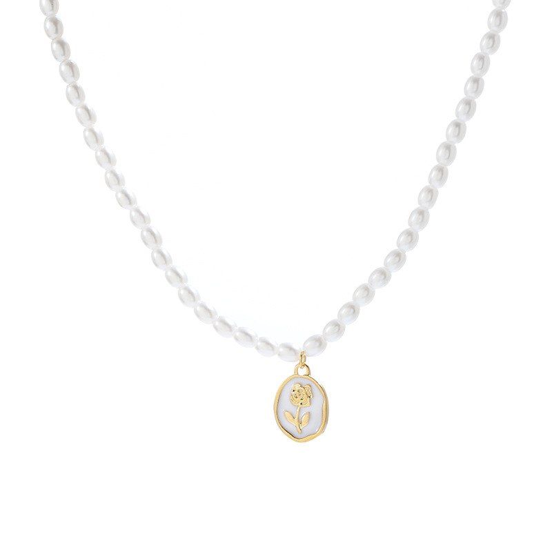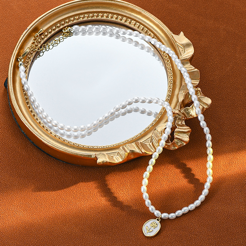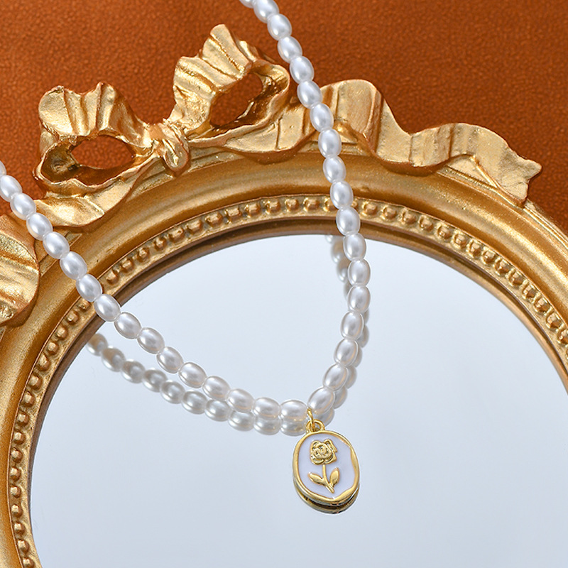 法式复古珍珠项链女ins潮韩国高级设计感玫瑰花吊坠锁骨链批发 English | 投诉