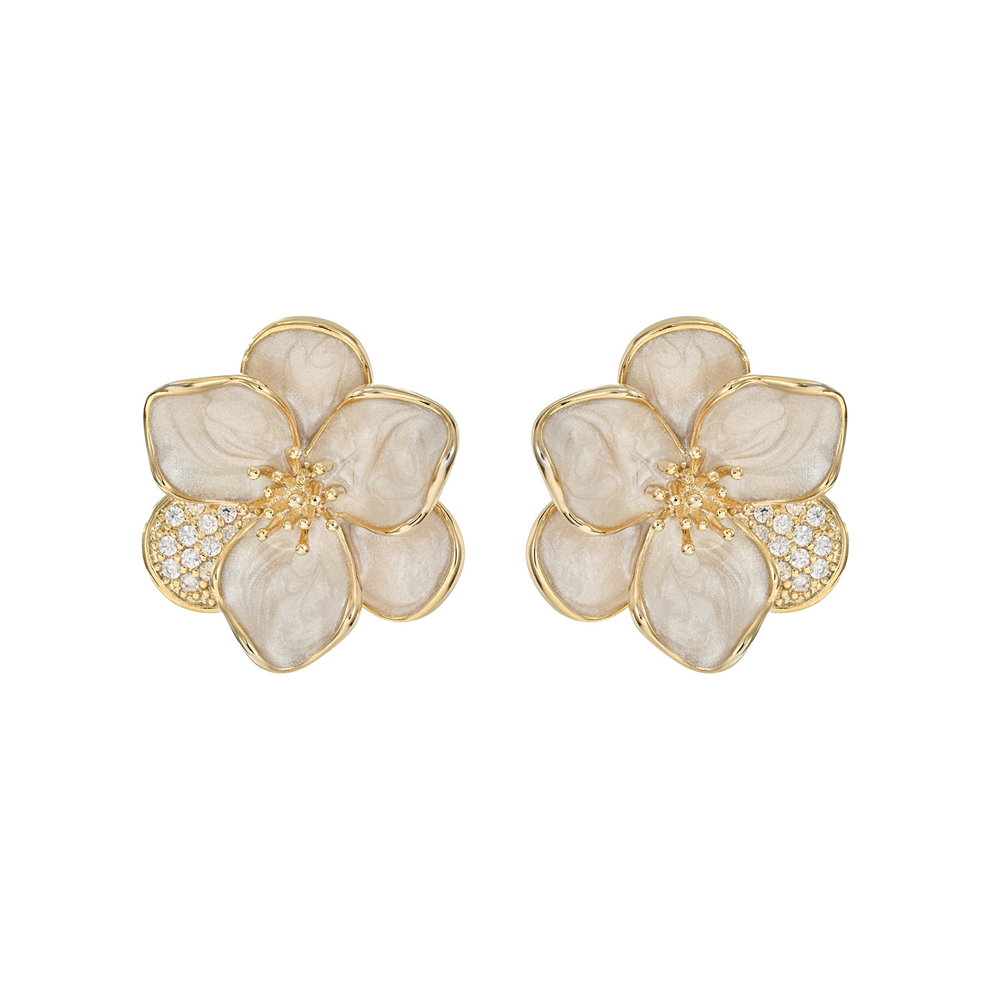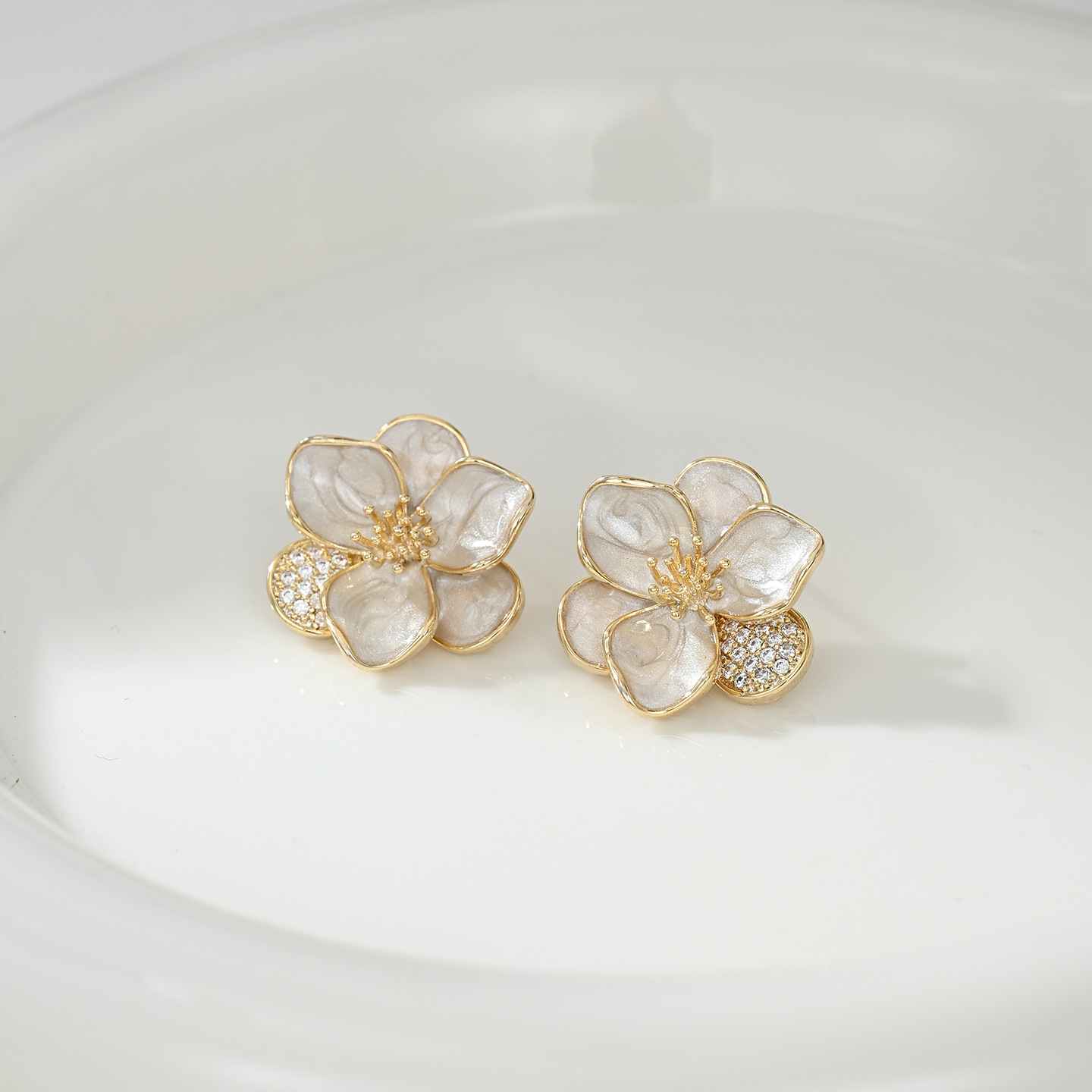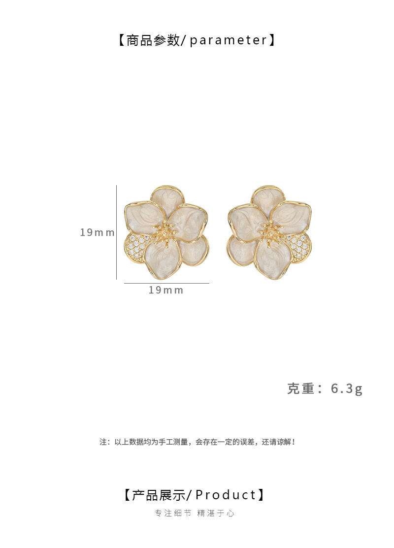 铜镀真金微镶锆石韩系百搭风小花耳钉日常通勤佩戴款画油耳饰品 English | 投诉