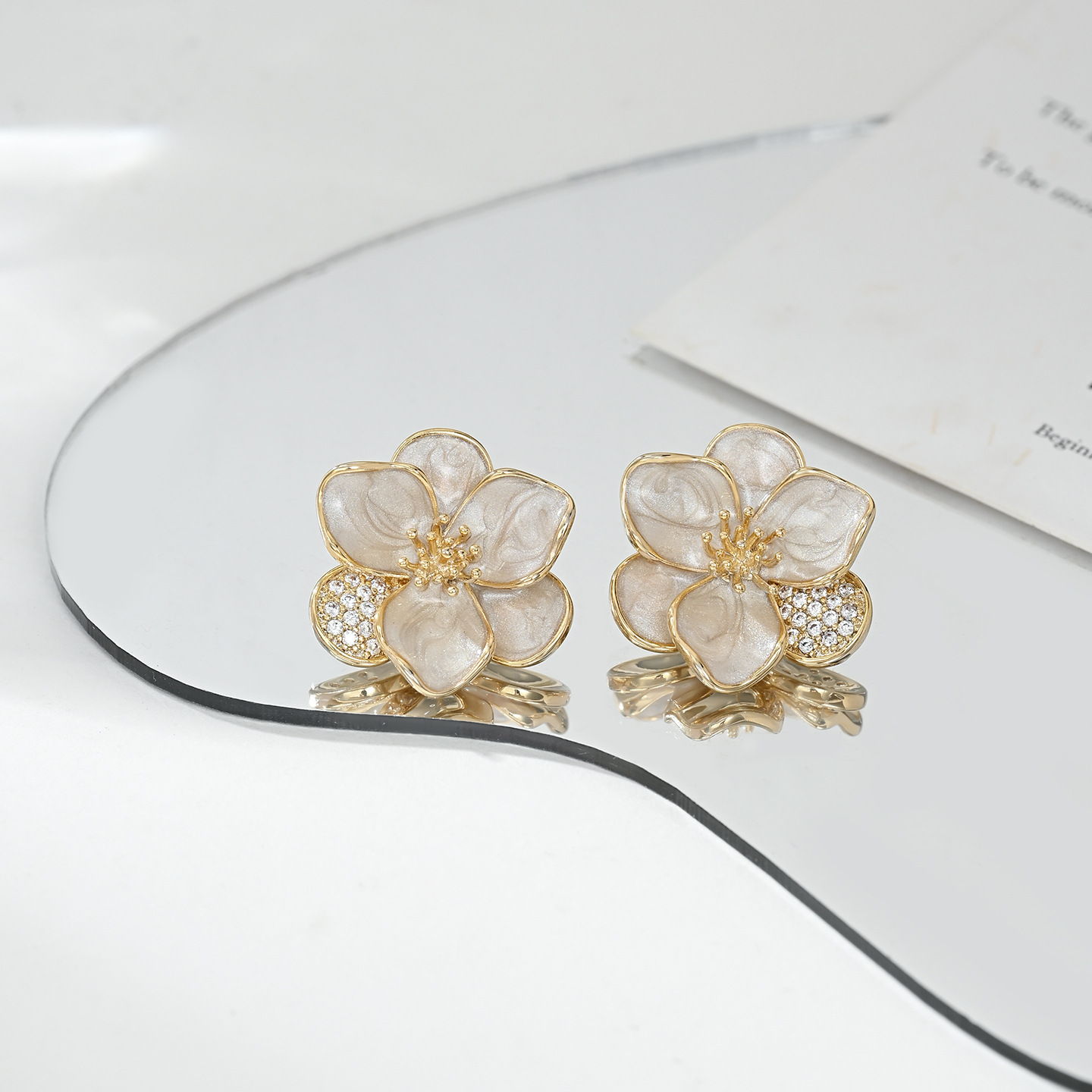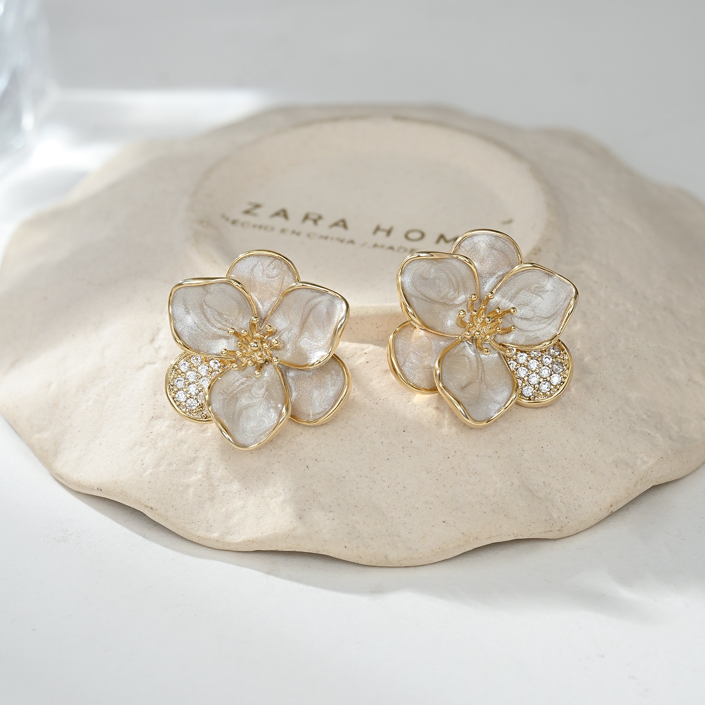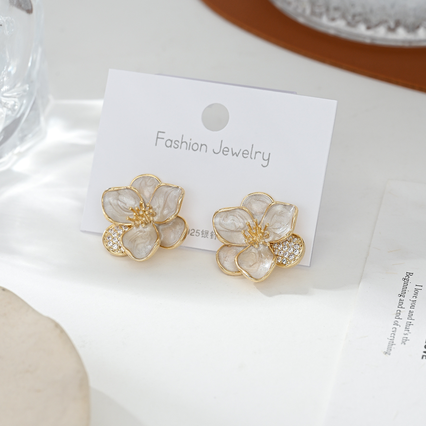 铜镀真金微镶锆石韩系百搭风小花耳钉日常通勤佩戴款画油耳饰品 English | 投诉