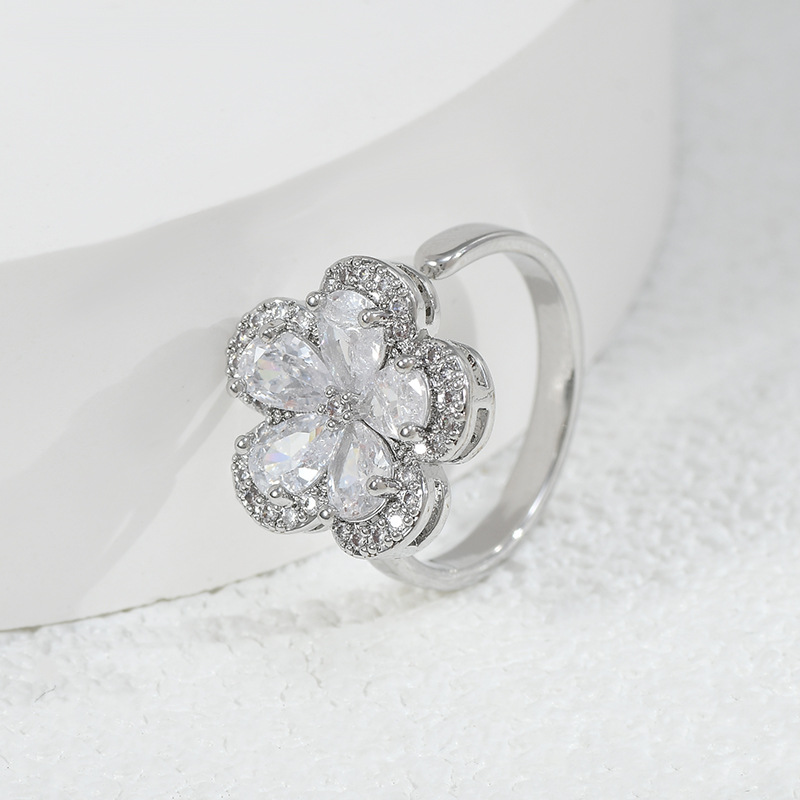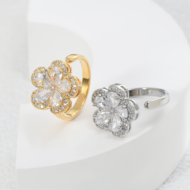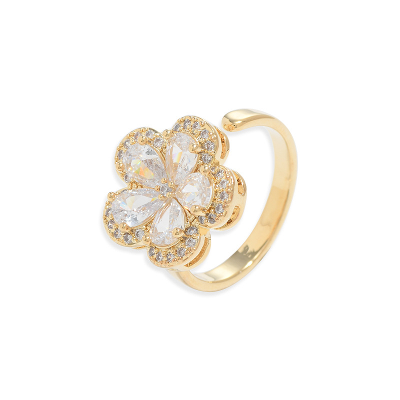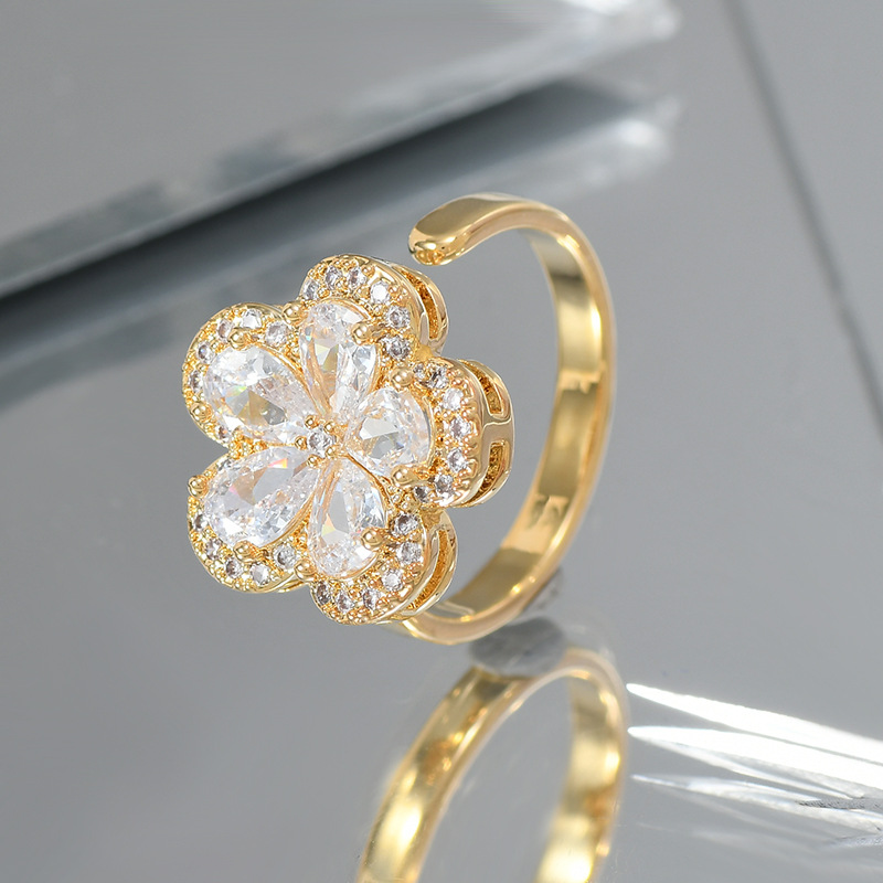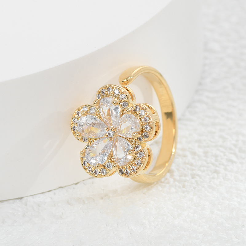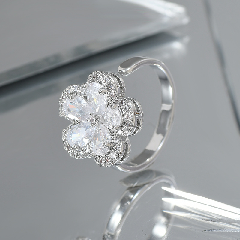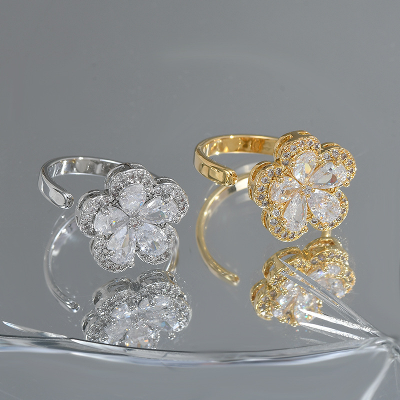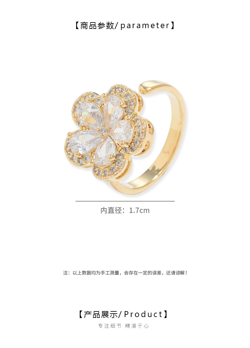 日韩抖音网红同款微镶锆石花朵开口戒女个性轻奢精致ins风食指戒 English | 投诉