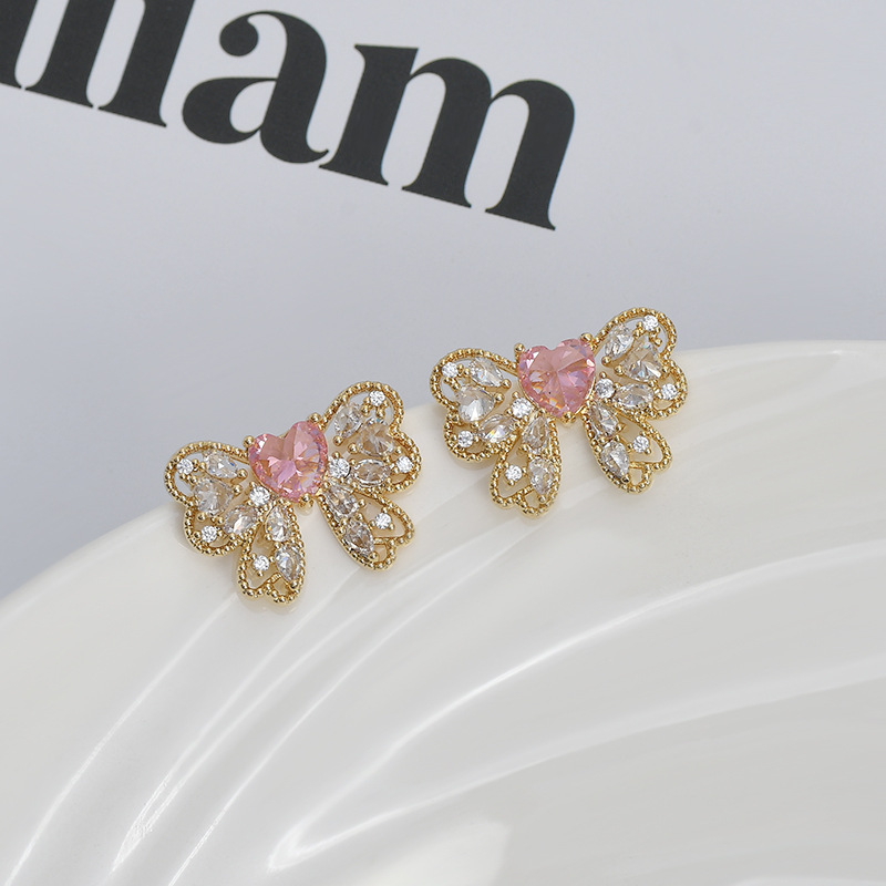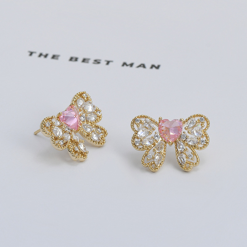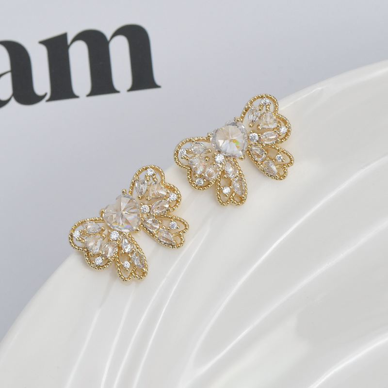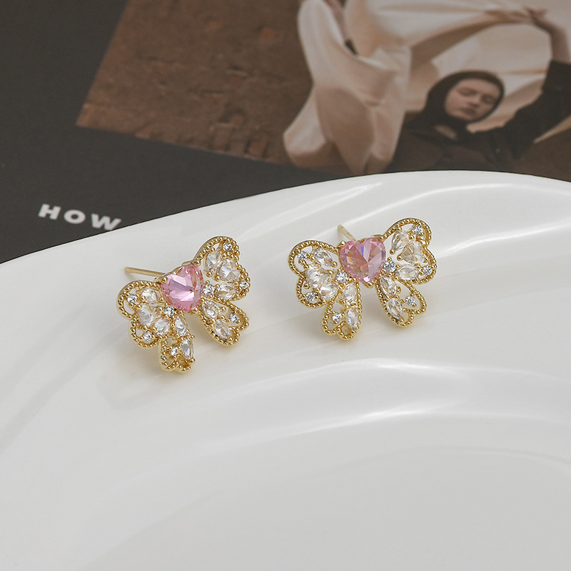 2023年新款微镶锆石气质耳钉女S925银针小众设计感蝴蝶结耳饰耳坠 English | 投诉