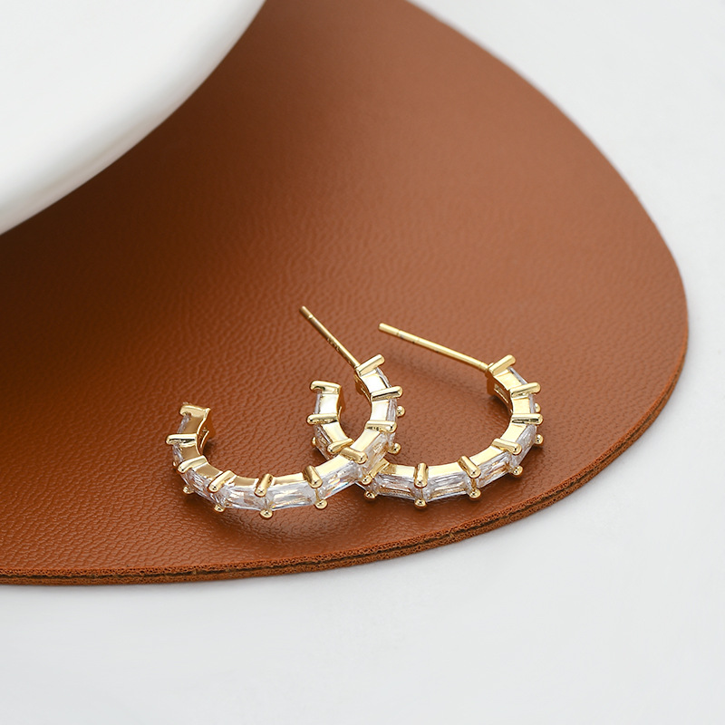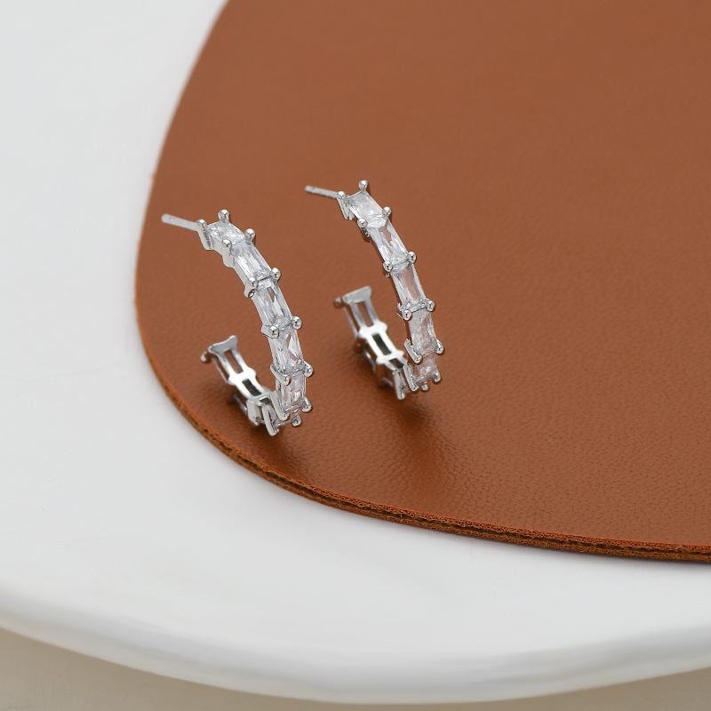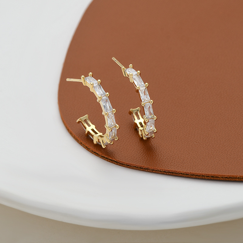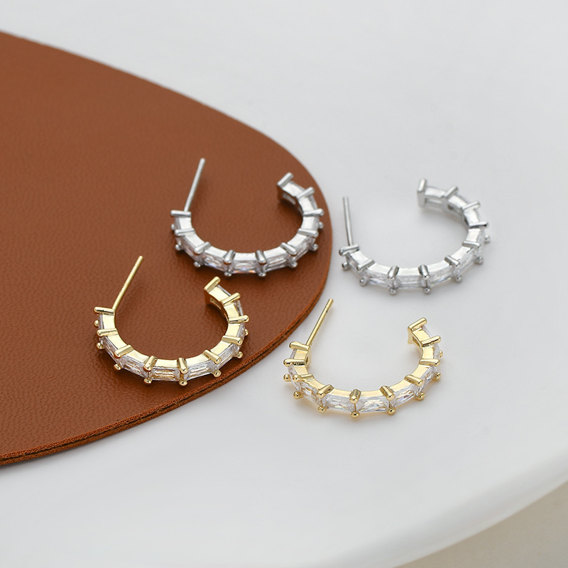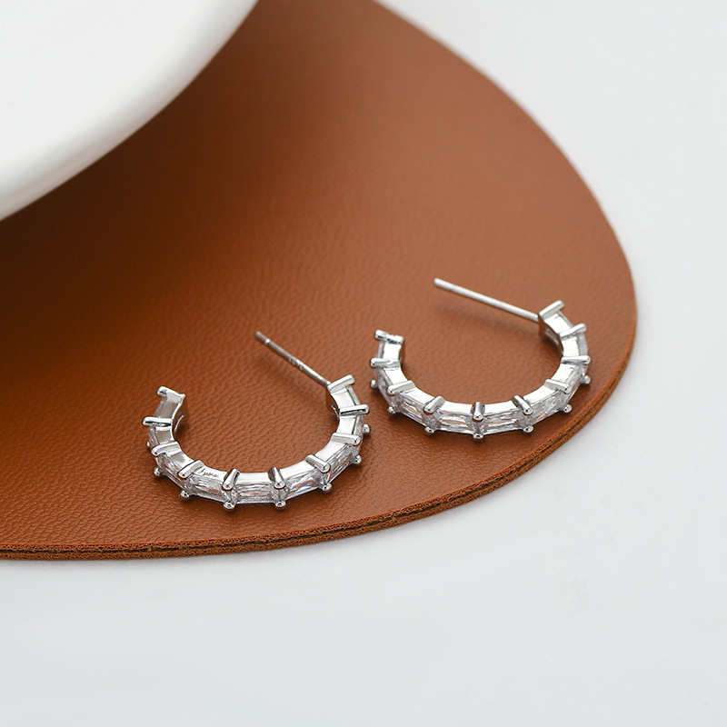 2023年新款微镶皓石气质耳钉女S925银针高级感几何C形耳坠耳饰品 English | 投诉