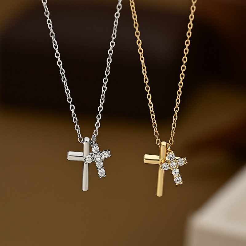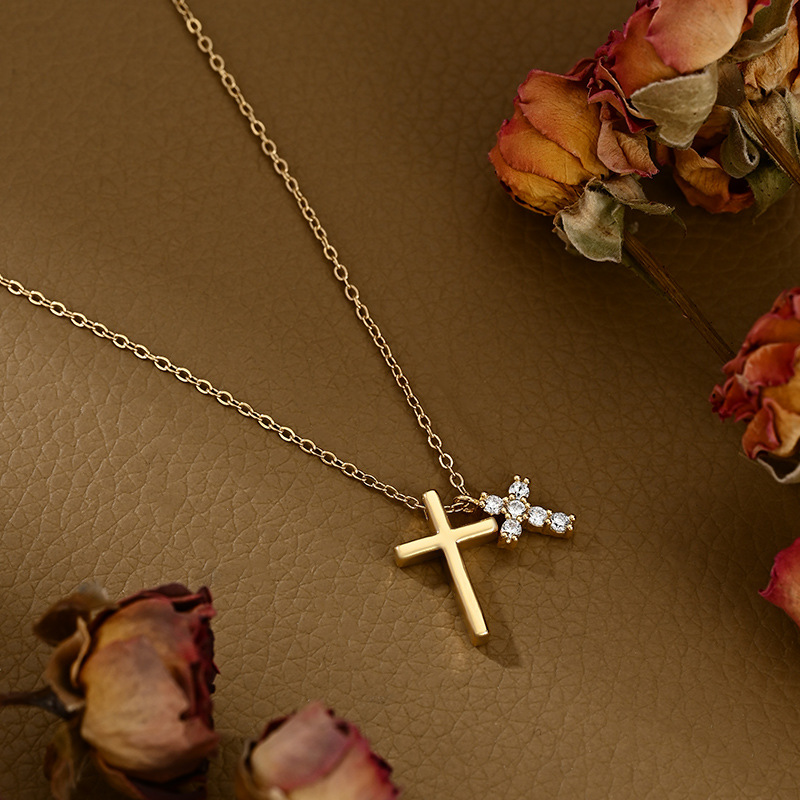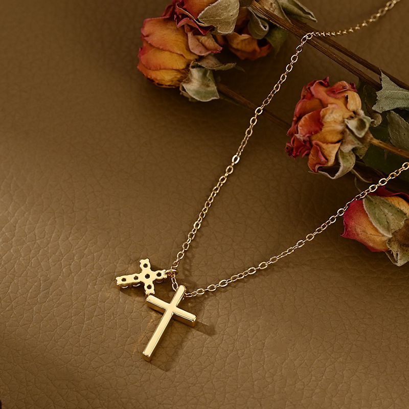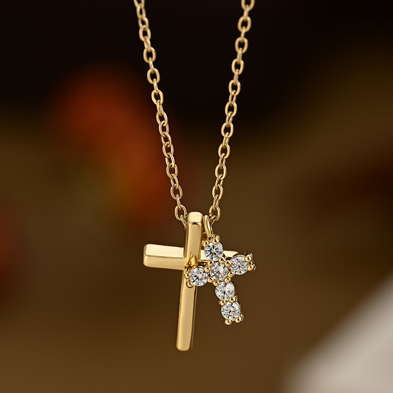真金电镀微镶锆石气质锁骨链女小众设计感十字架精致百搭颈链批发 English | 投诉