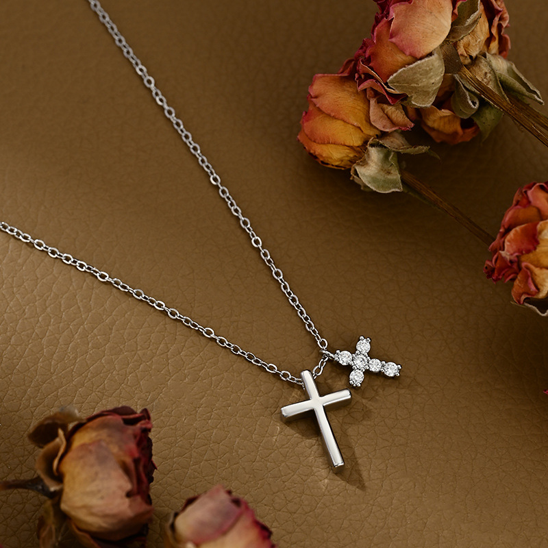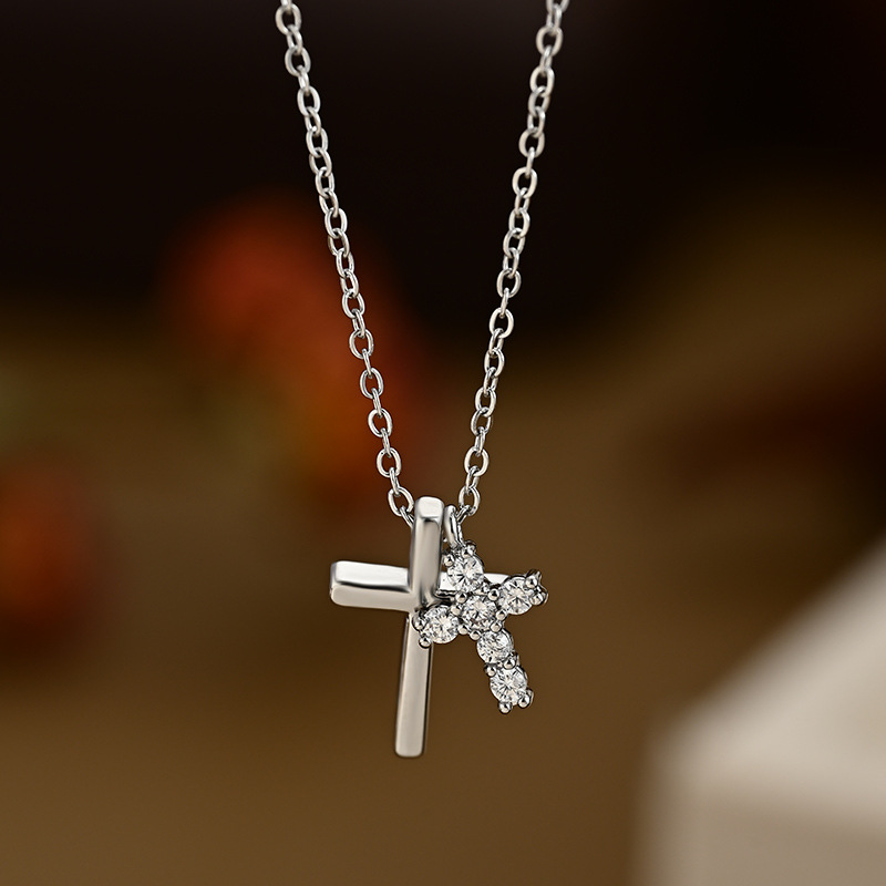 真金电镀微镶锆石气质锁骨链女小众设计感十字架精致百搭颈链批发