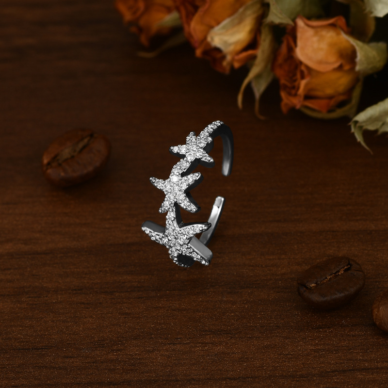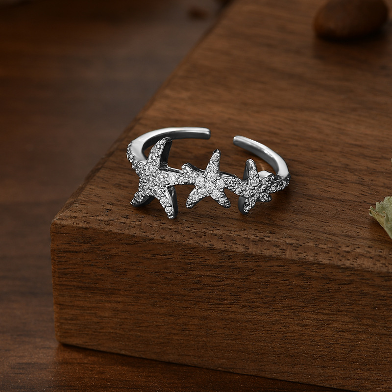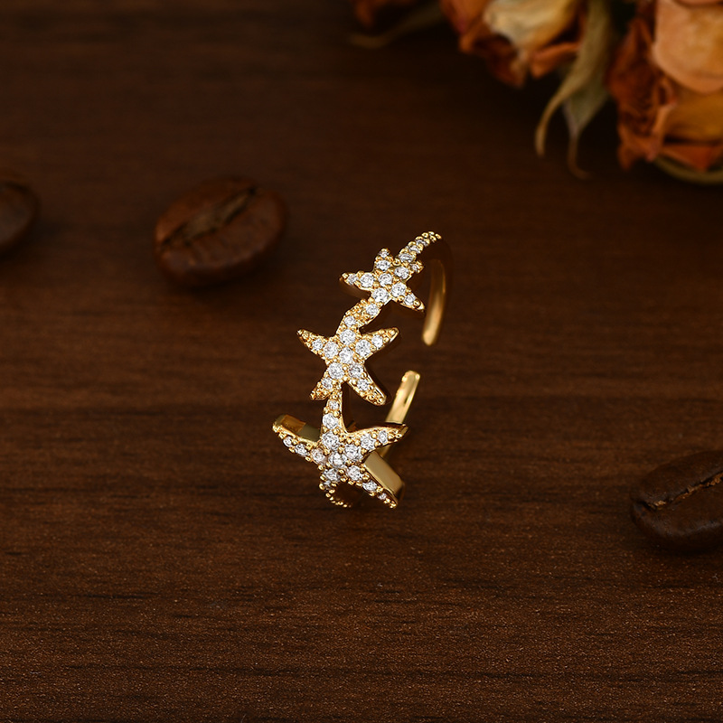 真金电镀镶锆石个性开口戒指女小众设计感海星指环精致百搭食指戒