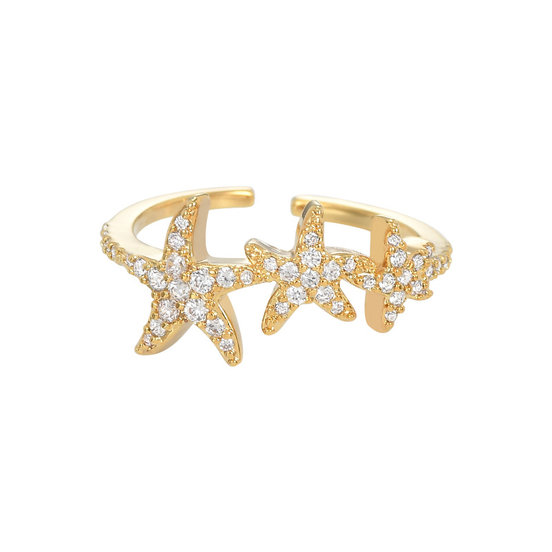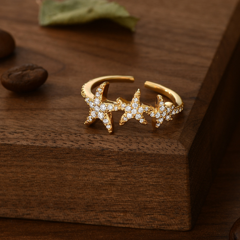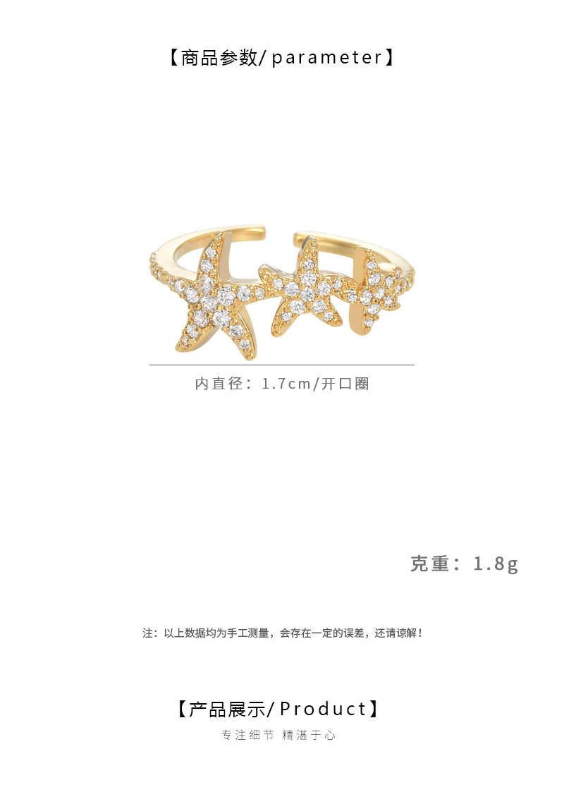 真金电镀镶锆石个性开口戒指女小众设计感海星指环精致百搭食指戒 English | 投诉