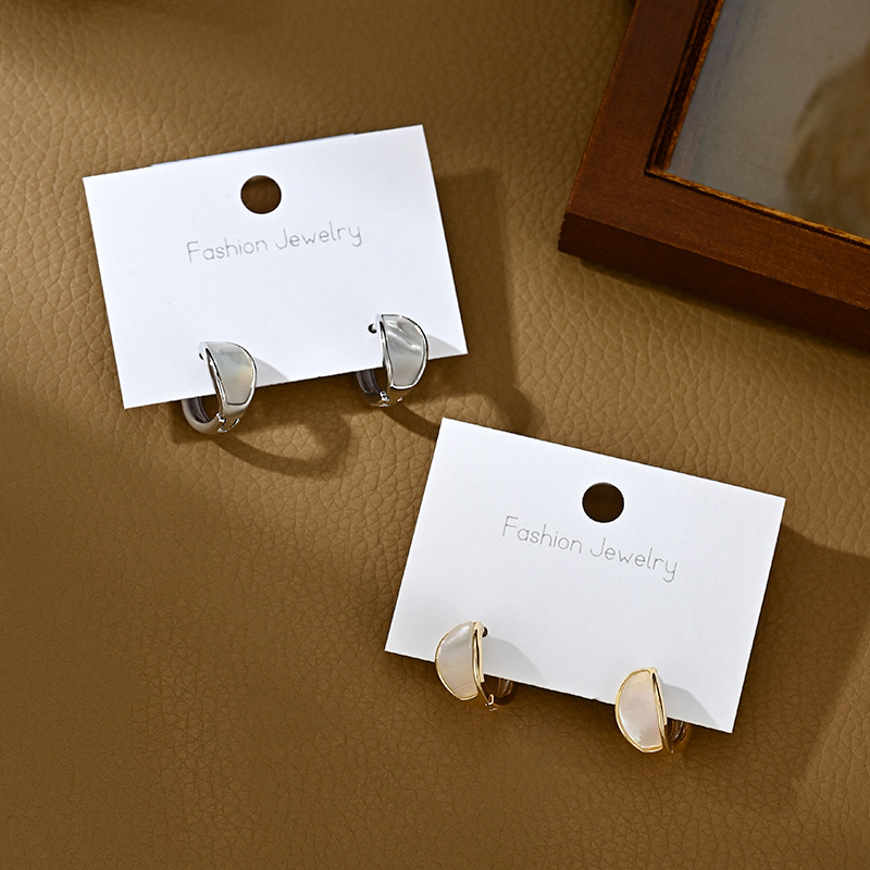 春夏新款通勤风简约几何C形耳环女高级感天然贝壳耳饰品网红耳扣 English | 投诉