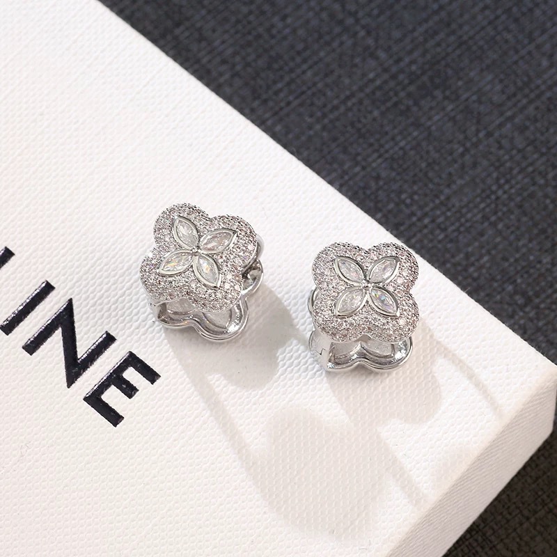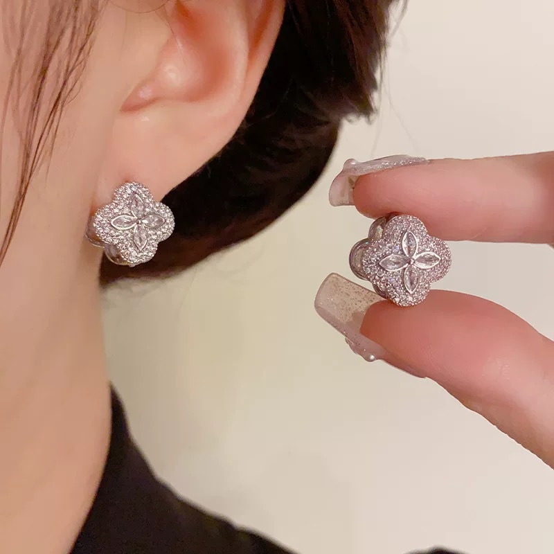 韩式甜美气质时尚可爱微镶四叶花双面耳扣精致小众设计感百搭耳环 English | 投诉