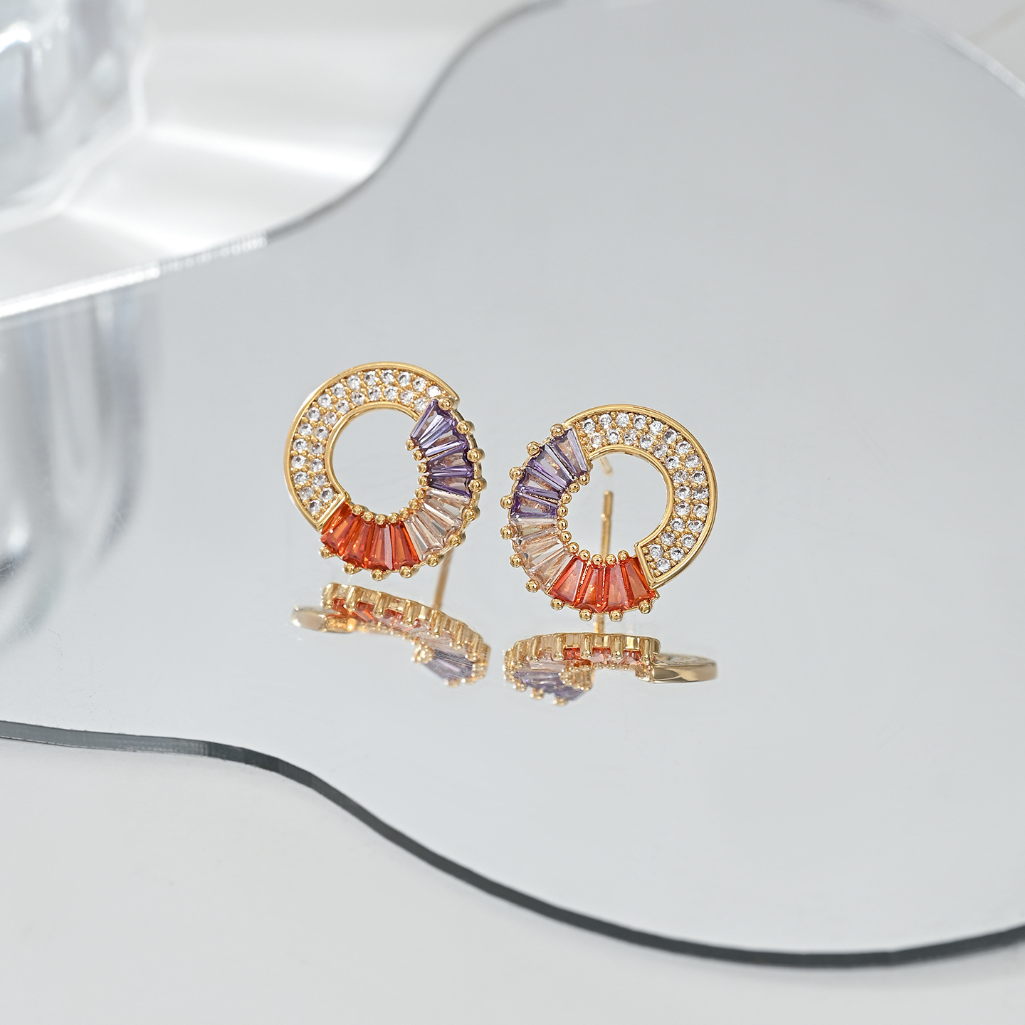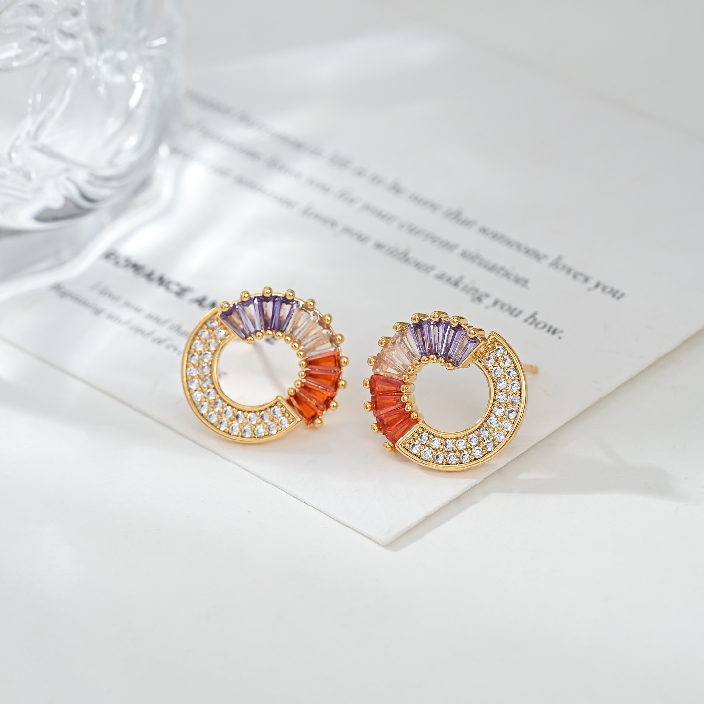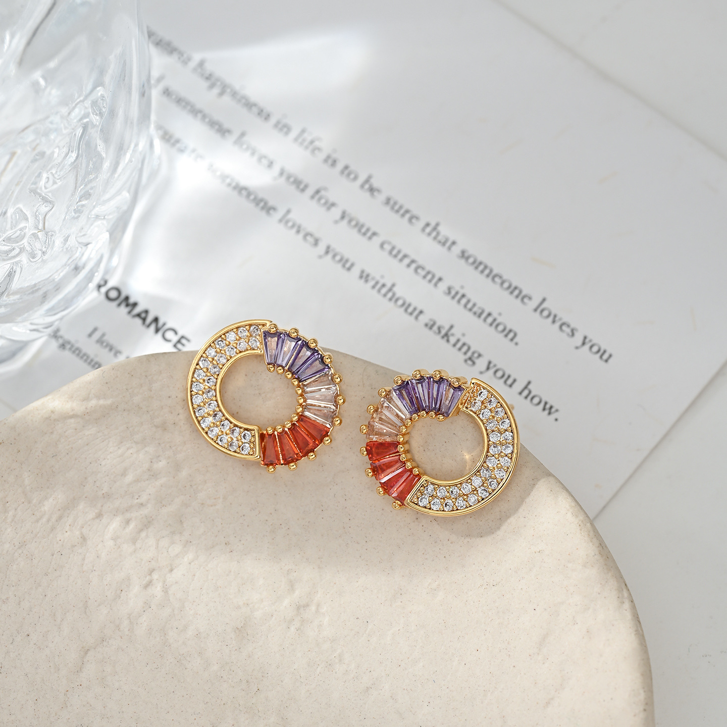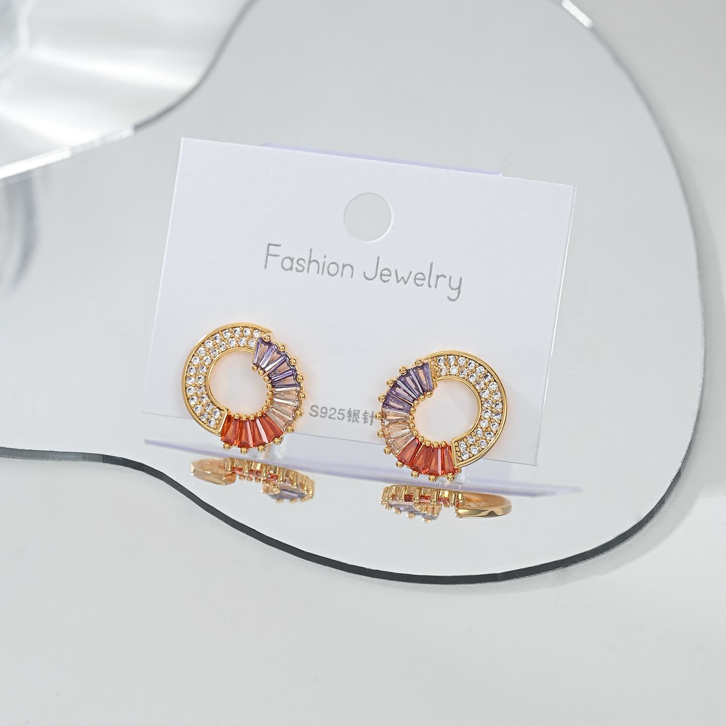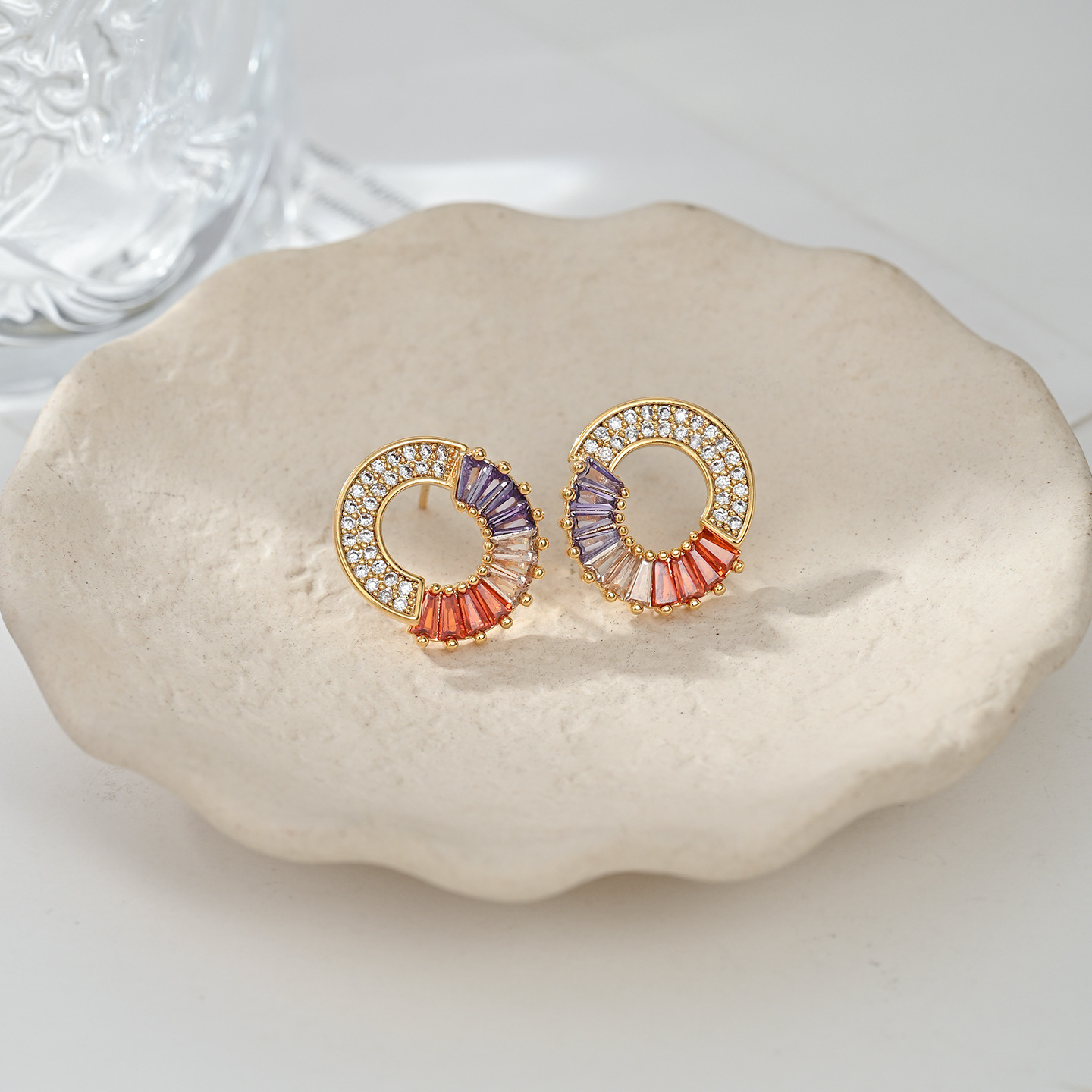 S925银针小香风高级圆圈设计感耳钉镶彩色锆石个性复古质感耳饰品 English | 投诉