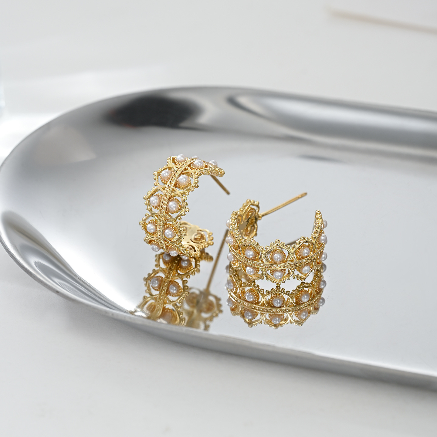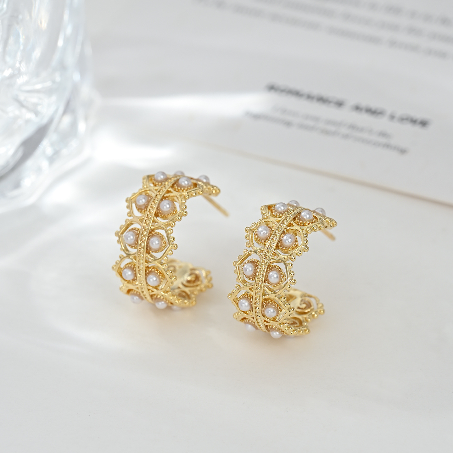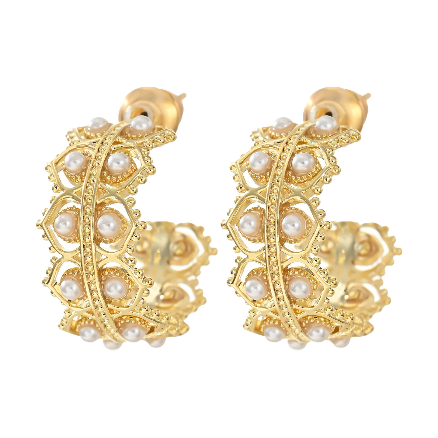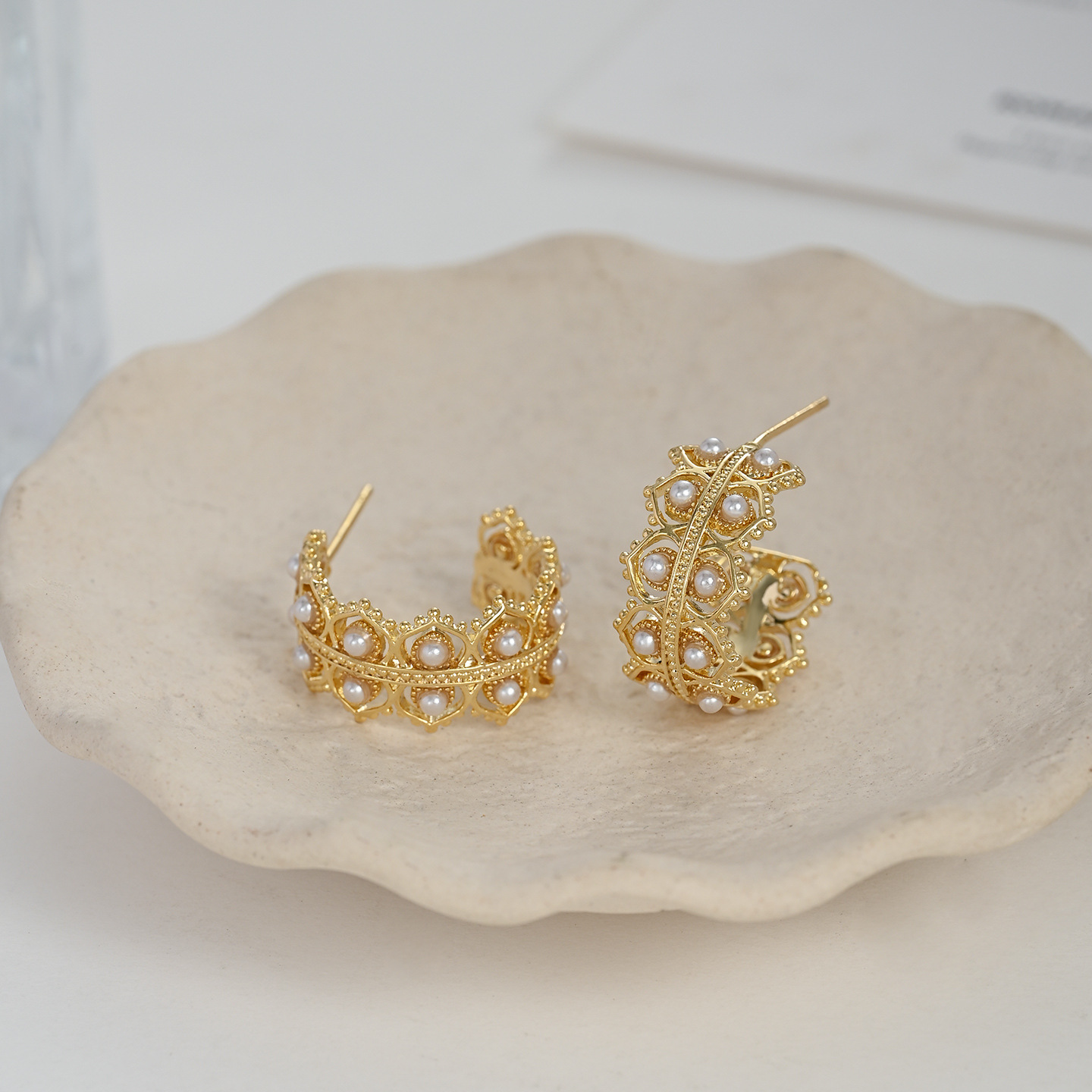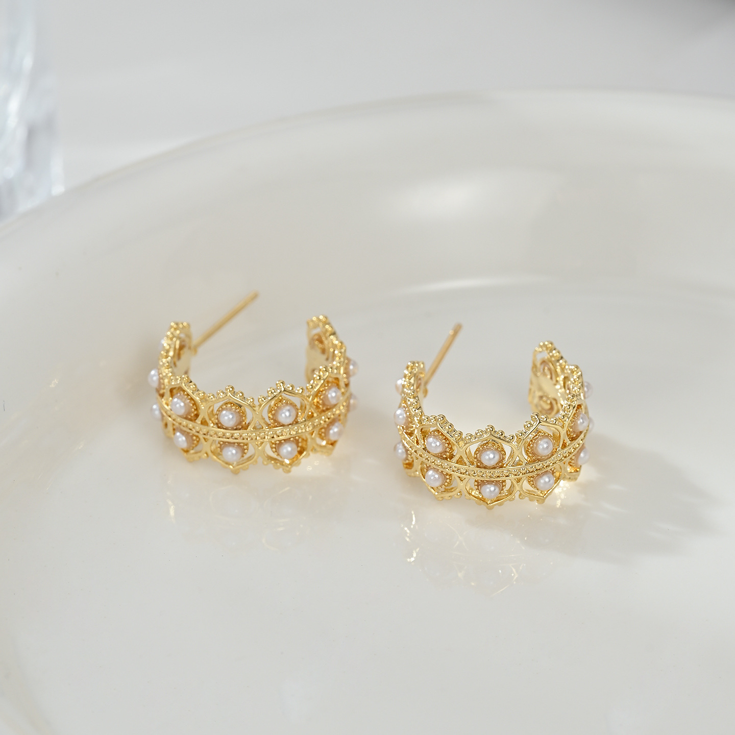 真金电镀精致锆石C形耳环925纯银针设计感编织花纹耳钉高级感耳饰 English | 投诉