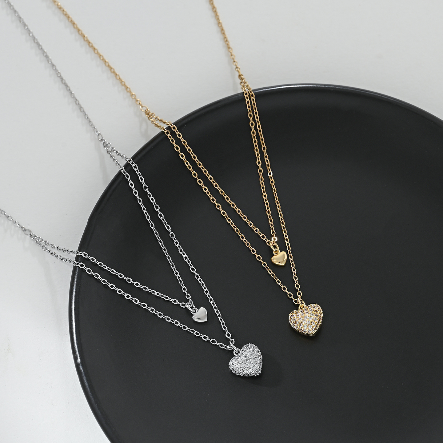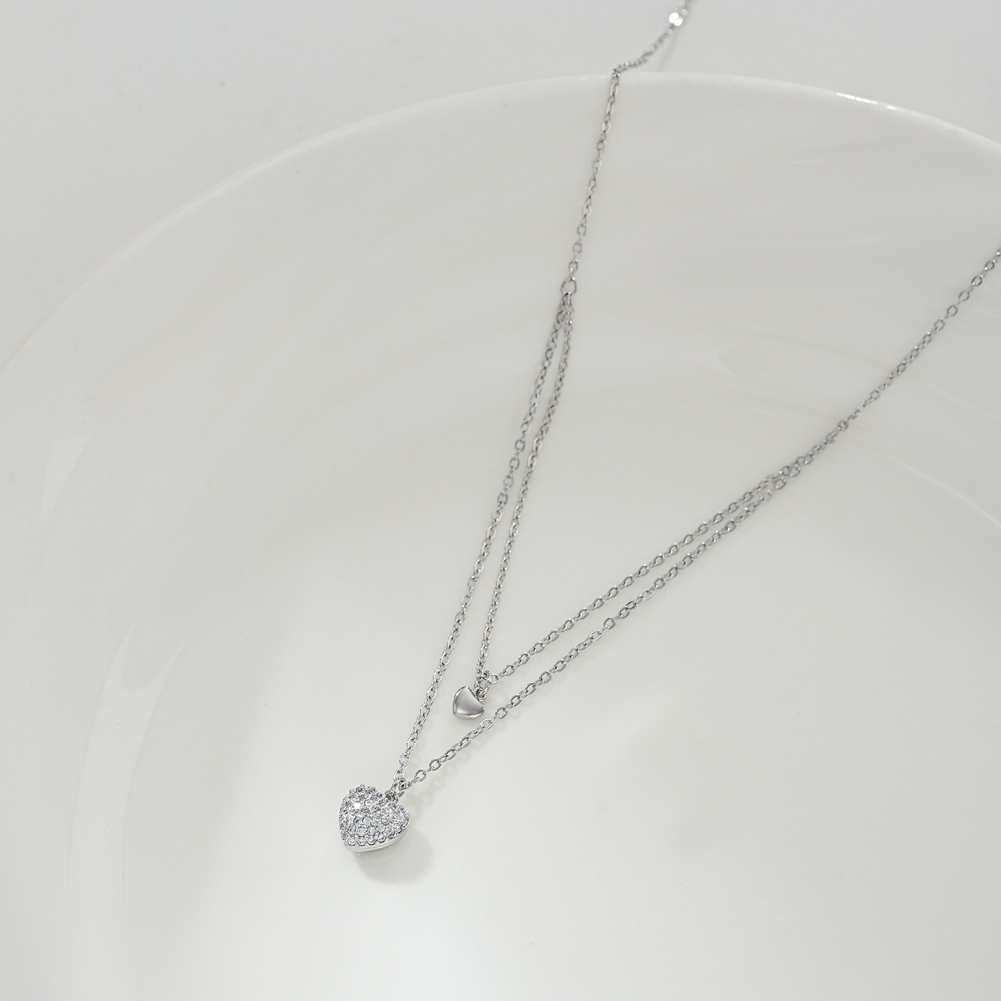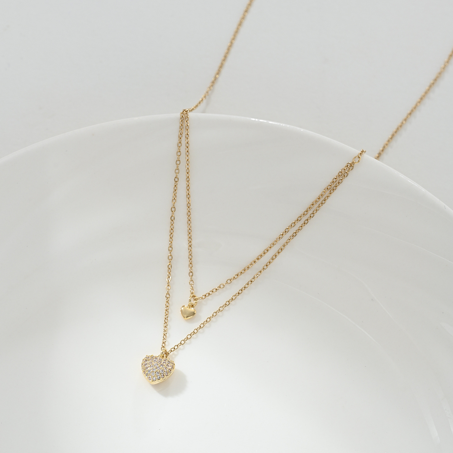 时尚日常高级感爱心双链条锁骨链项链精致百搭气质款颈链批发 English | 投诉