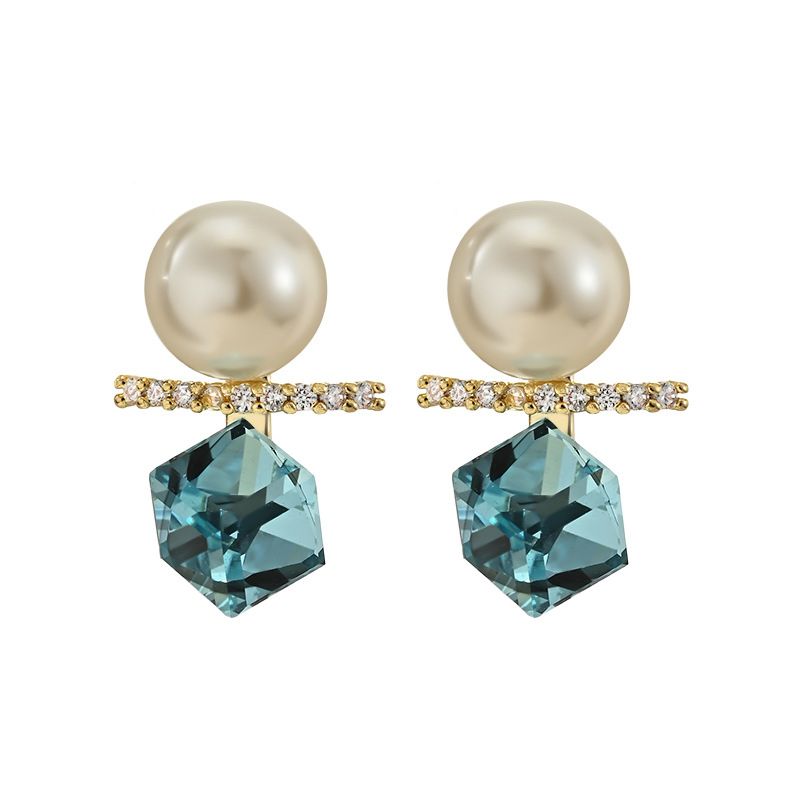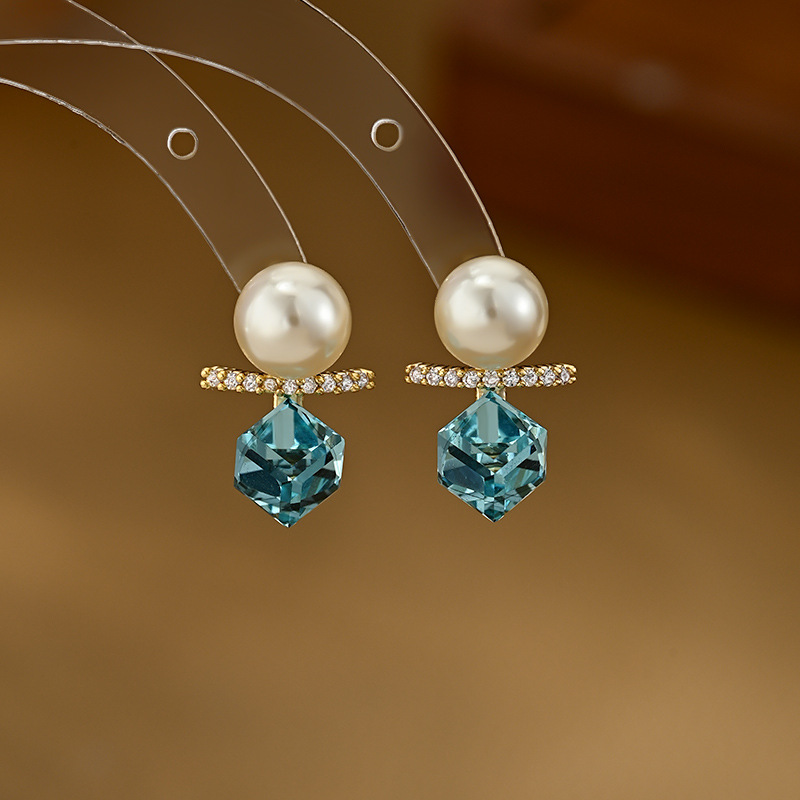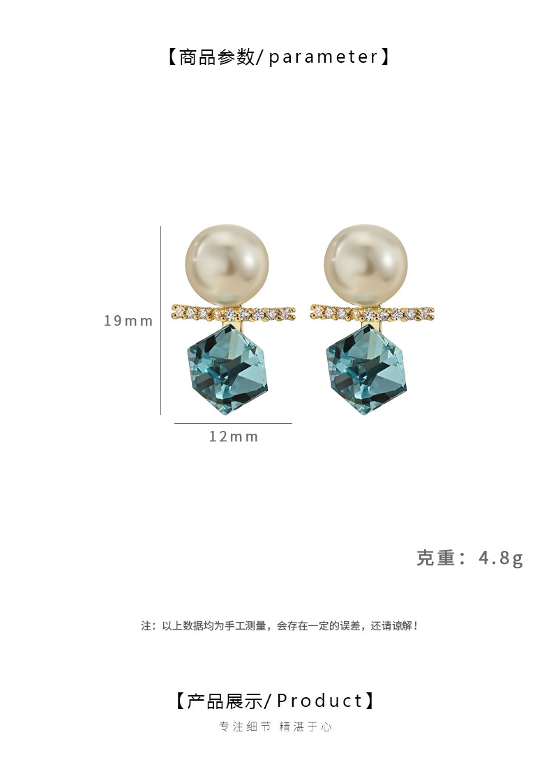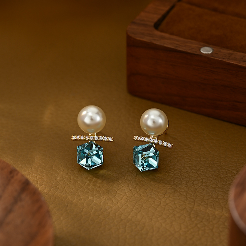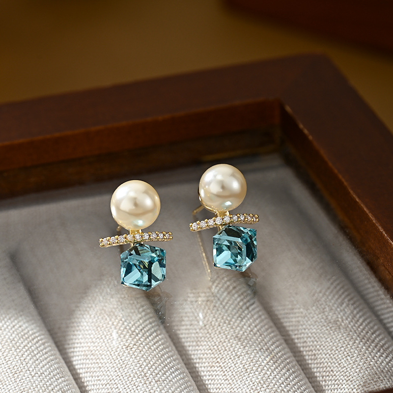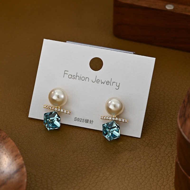 抖音直播热卖S925银针复古法式珍珠耳钉女高级感几何方糖水晶耳环 English | 投诉