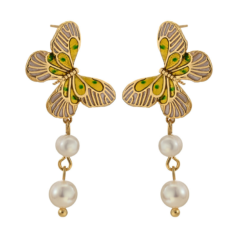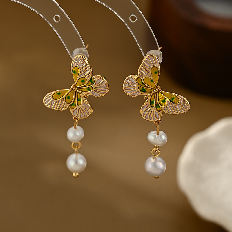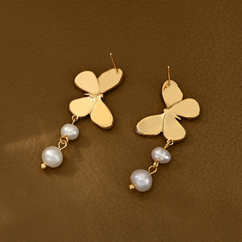 ins新款真金电镀天然淡水珍珠蝴蝶耳钉女S925银针轻奢高级感耳饰 English | 投诉