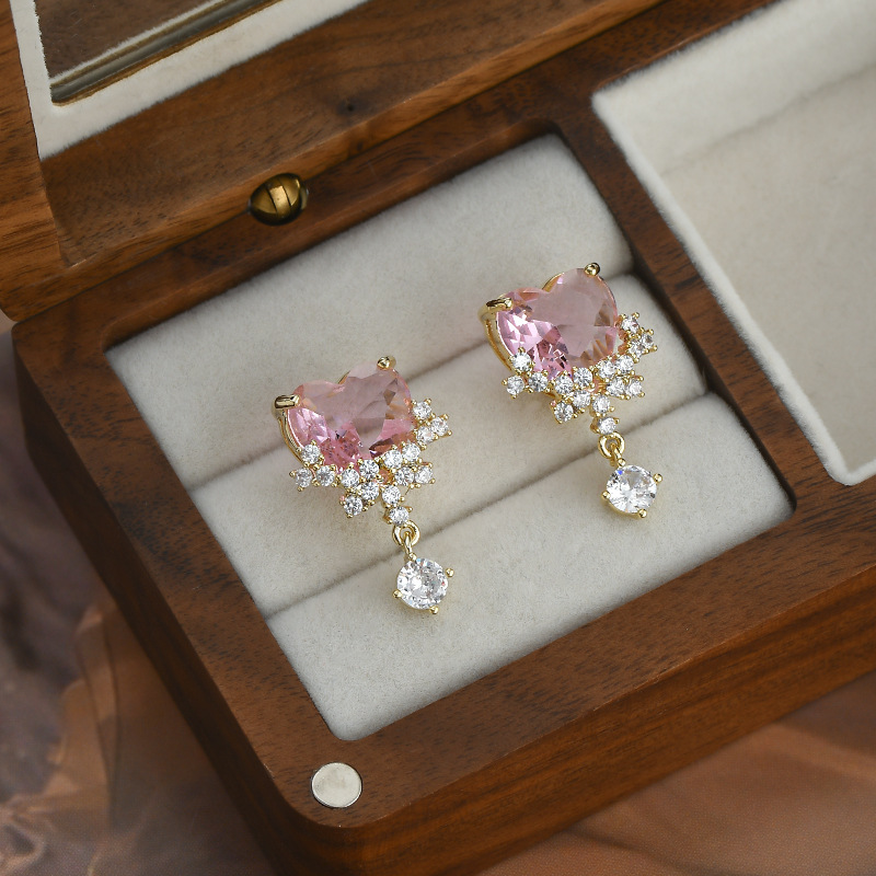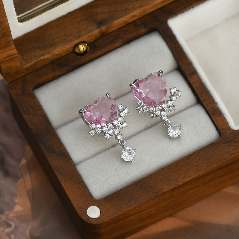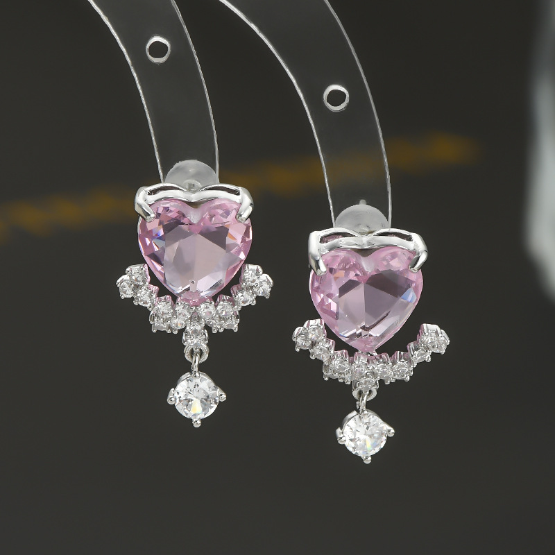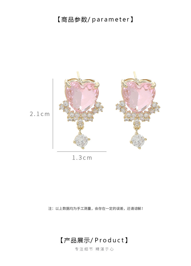 2023年新款微镶锆石气质耳钉女S925银针粉色爱心耳饰甜美学生耳坠 English | 投诉