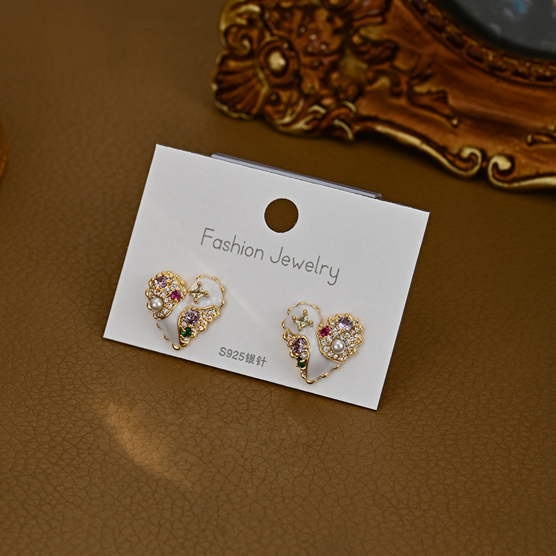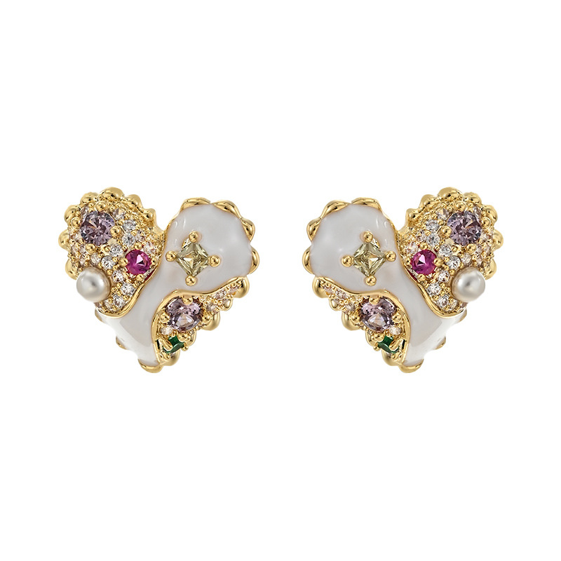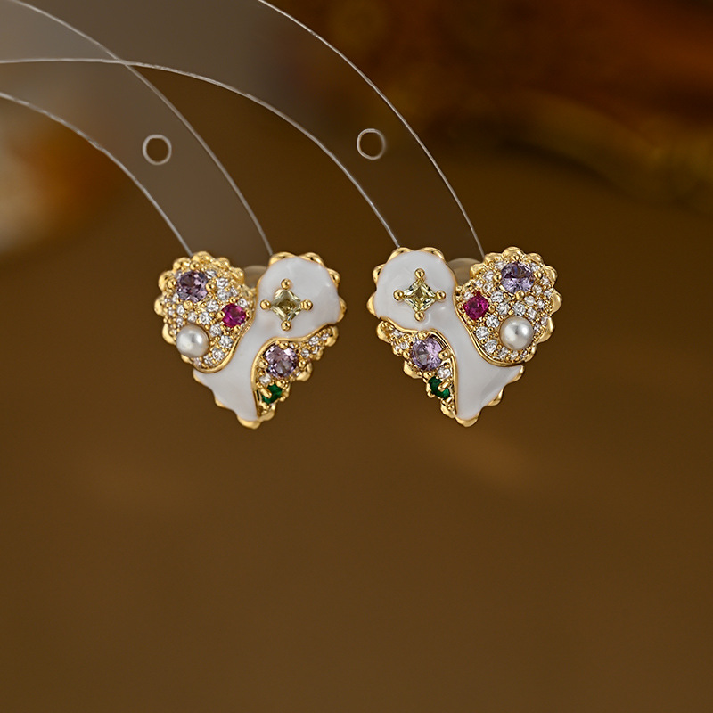 小众设计感日常风爱心画油耳钉文艺百搭款耳饰品时尚韩系气质款 English | 投诉