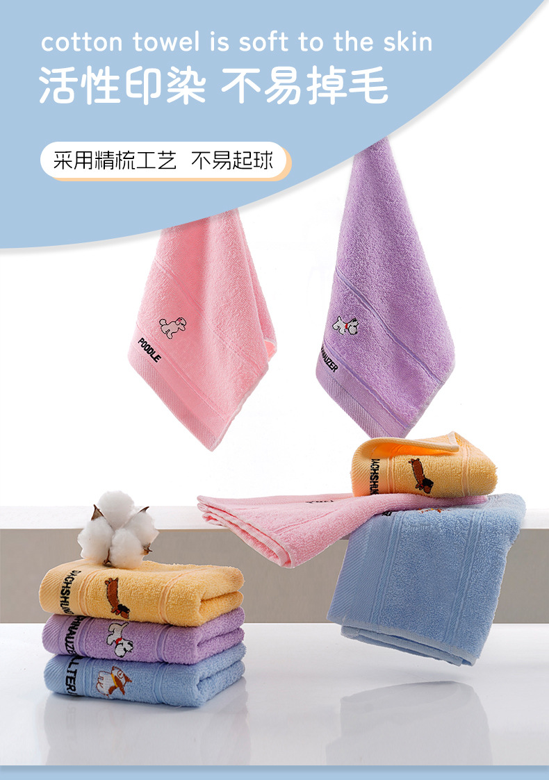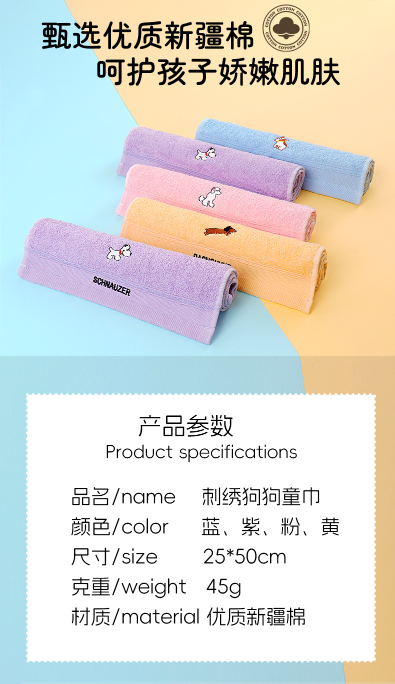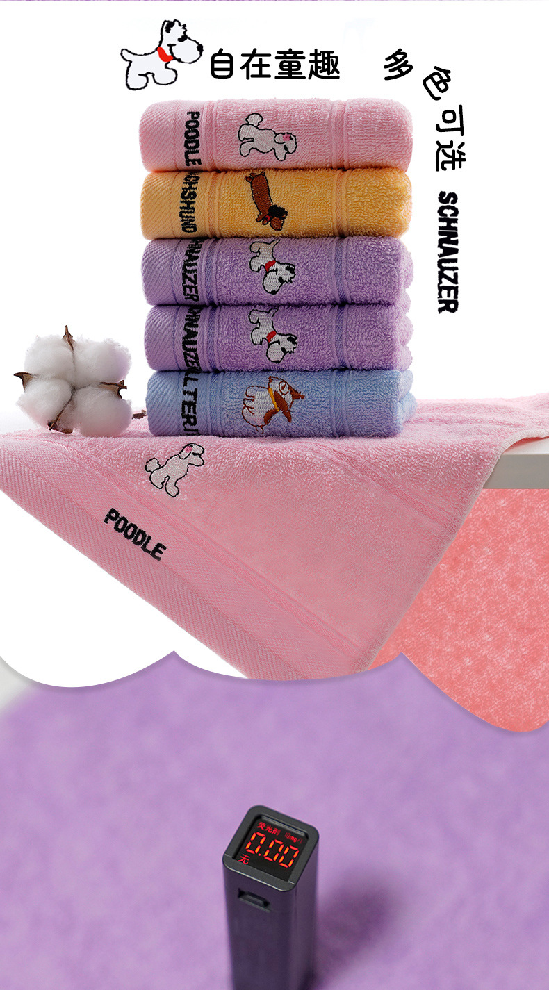 儿童毛巾纯棉吸水柔软洗脸小毛巾批发幼儿园宝宝刺绣卡通小狗