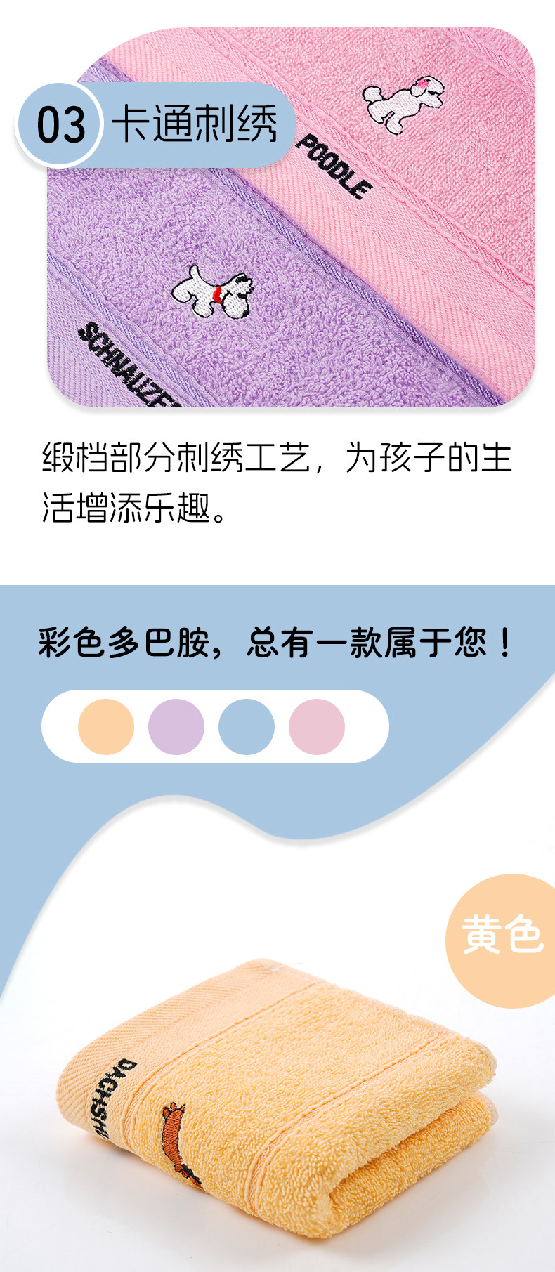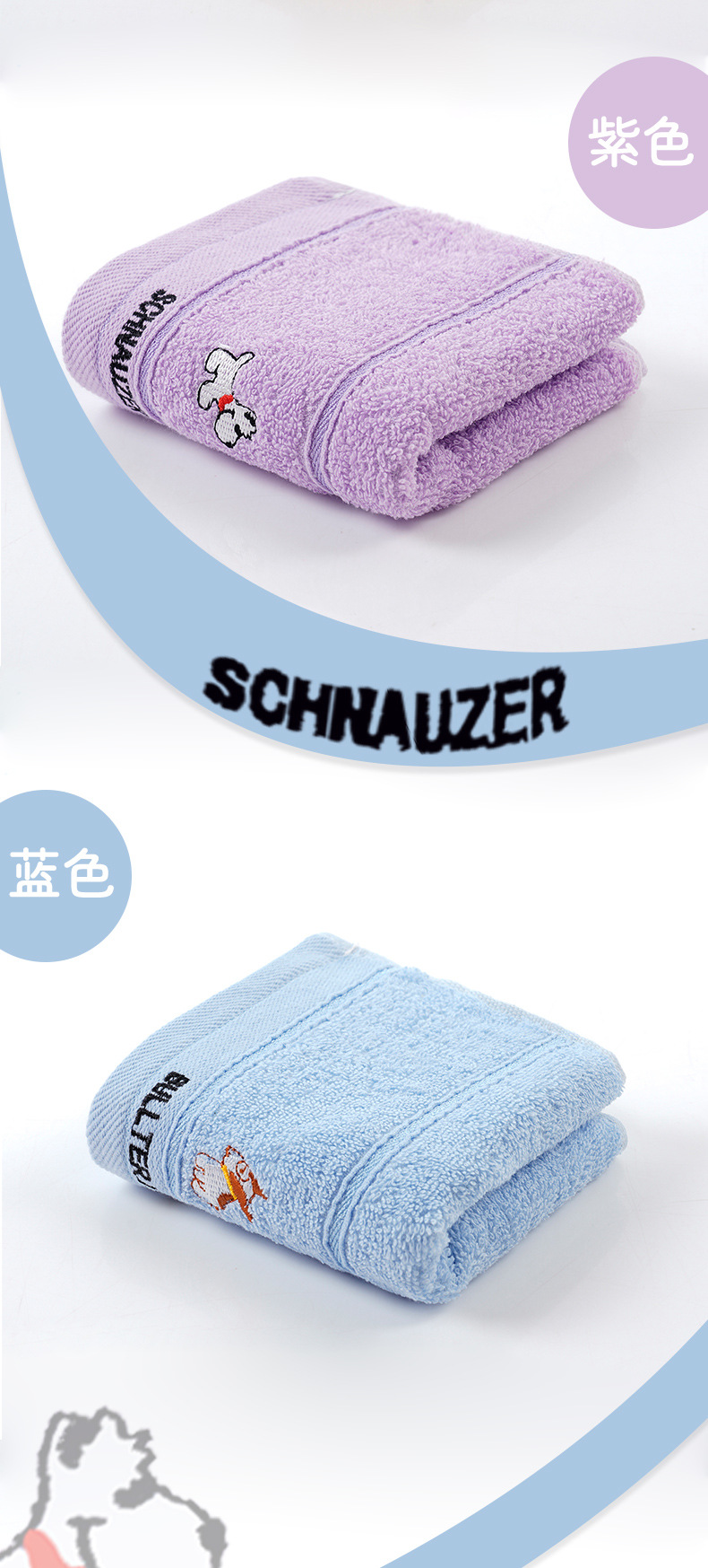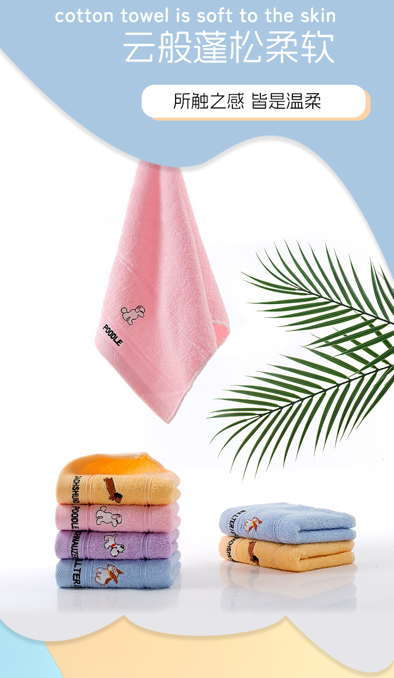 儿童毛巾纯棉吸水柔软洗脸小毛巾批发幼儿园宝宝刺绣卡通小狗