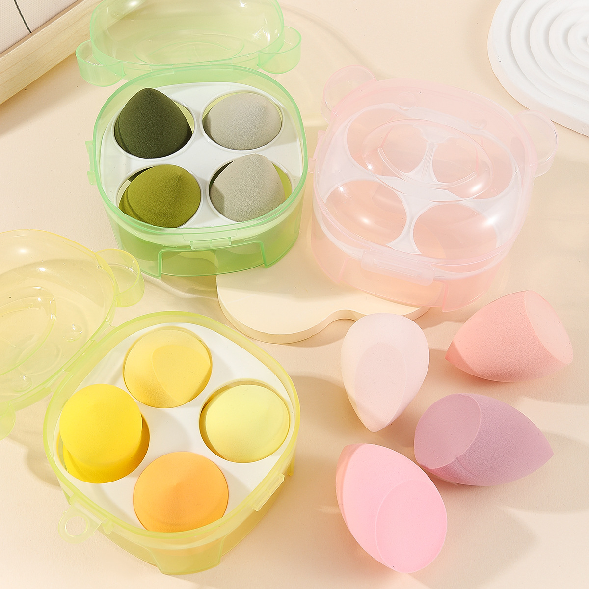 小熊小猫四件套盒美妆蛋干湿两用海绵彩妆蛋超软不吃粉美妆蛋套装
