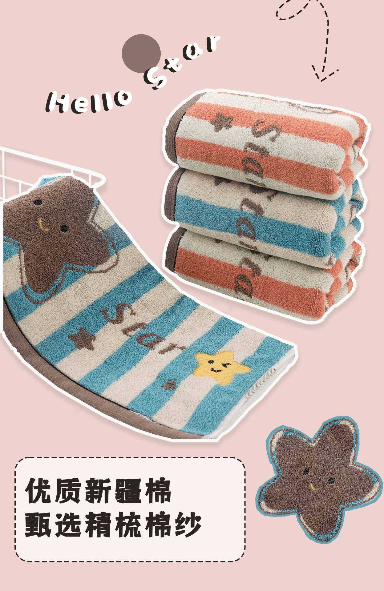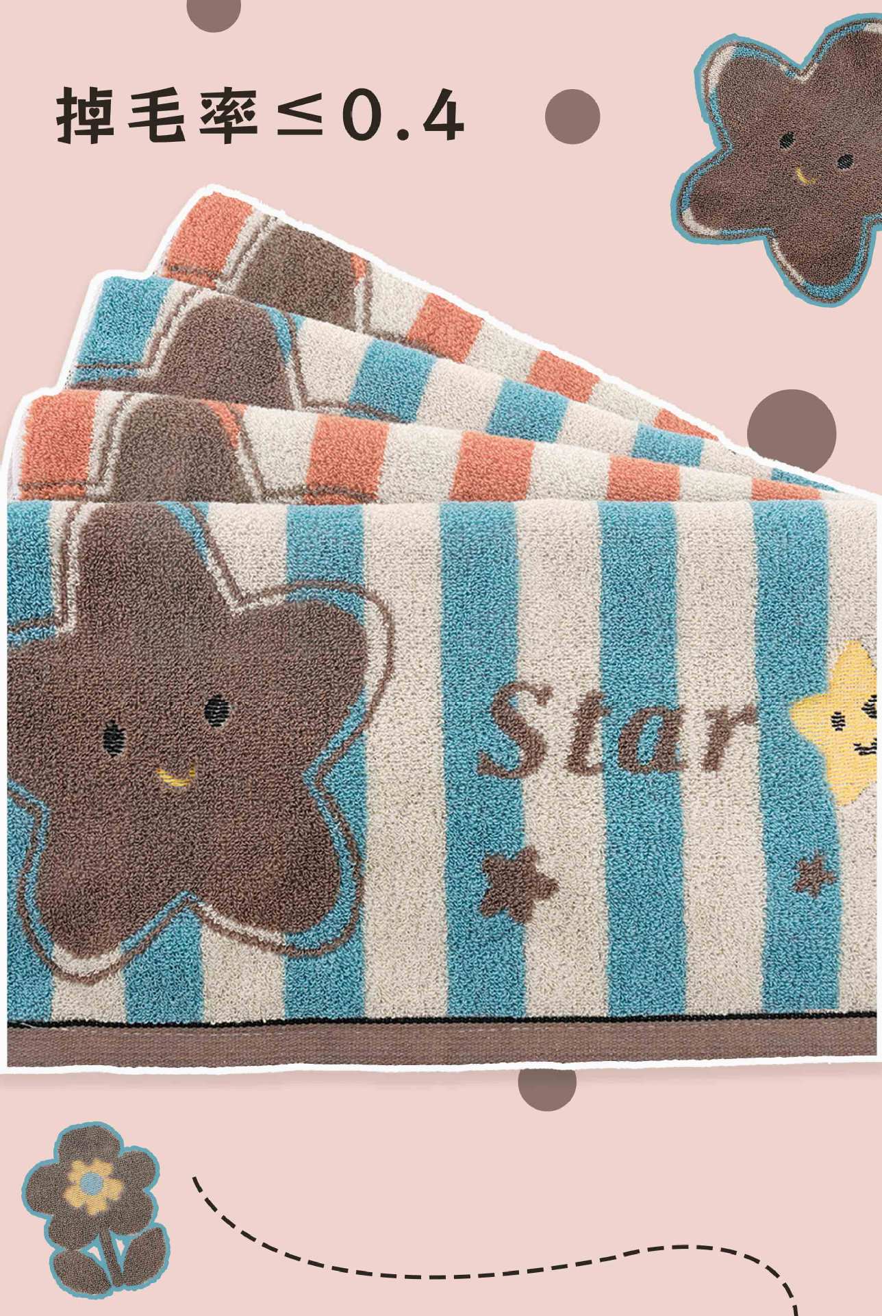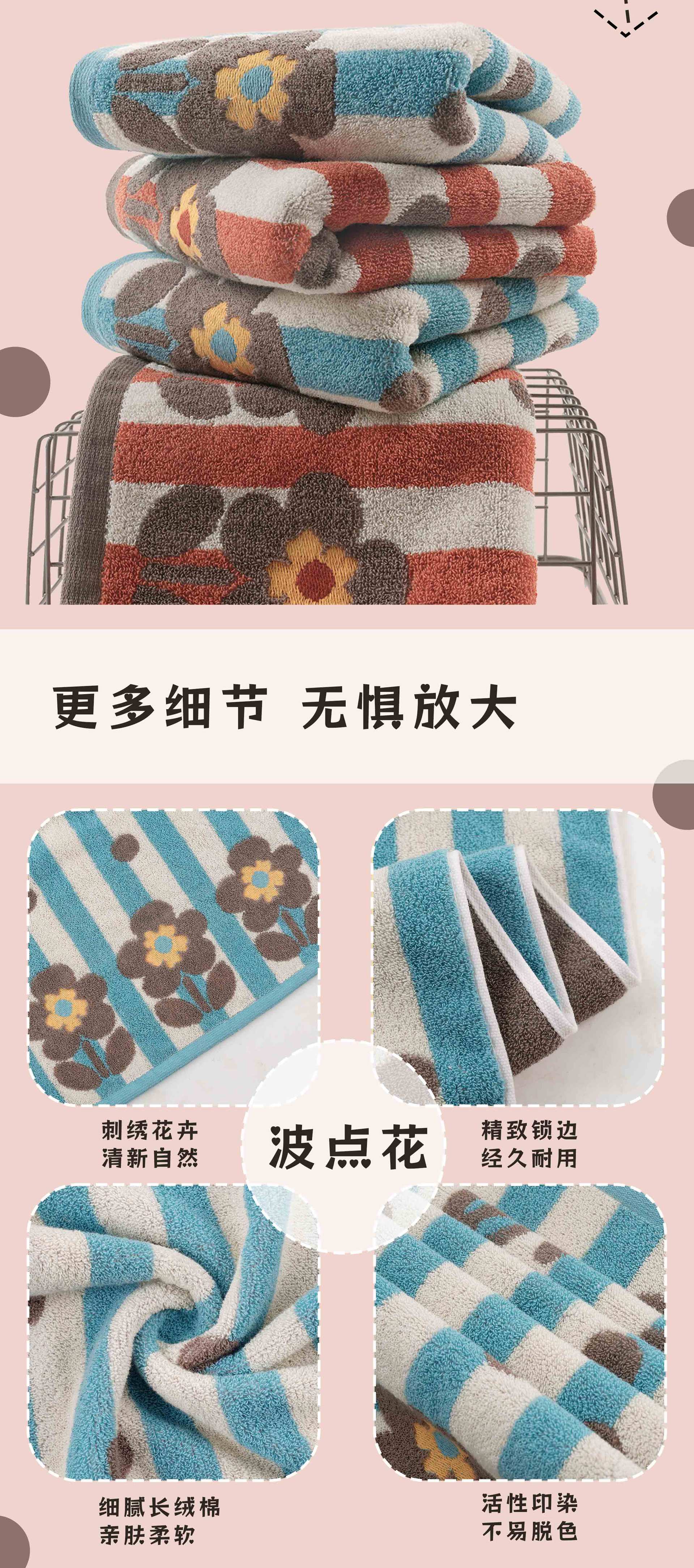 品牌: 金莱恩 货号: xx 材质: 纯棉 纱线规格: 16支 制作工艺: 提花,平织 克重: 120g(含)-140g(不含) 加工定制: 是 颜色: 波点花【双色两条装】,明星【双色两条装】 规格(长*宽cm): 34*74cm 重量: 0.5 kg/条