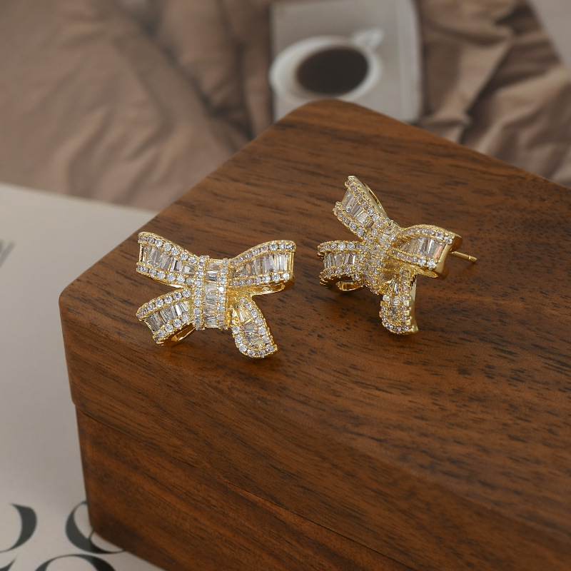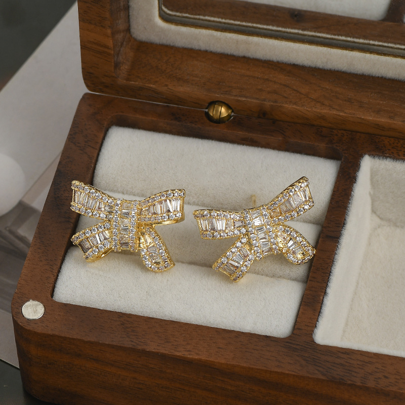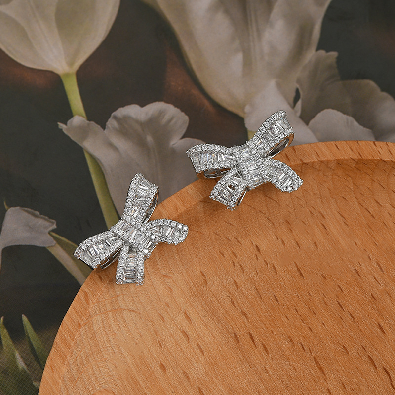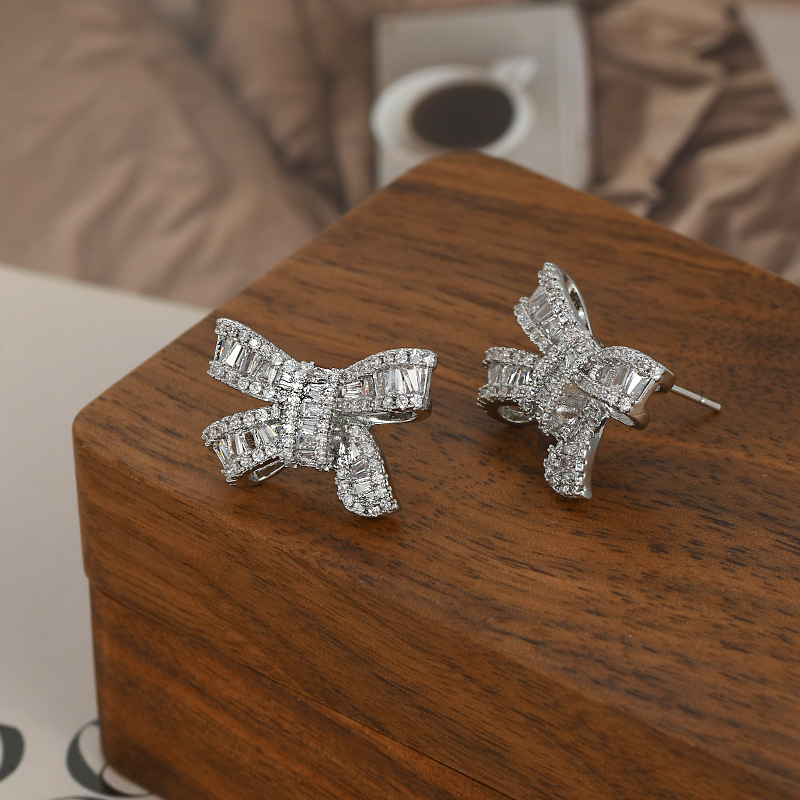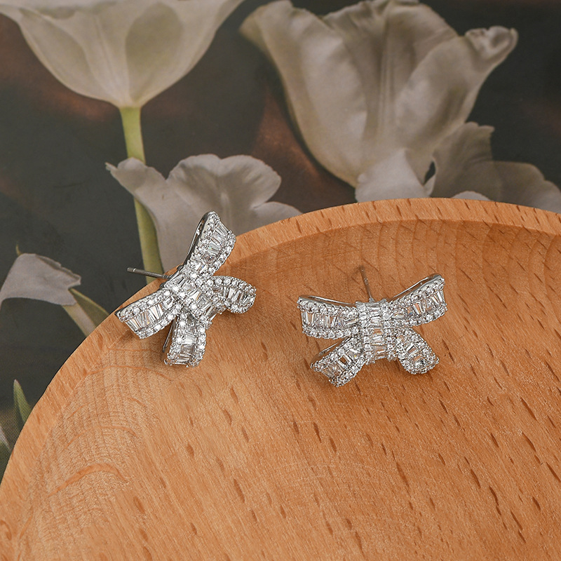 2023年新款微镶锆石气质耳钉女S925银针精致蝴蝶结耳饰轻奢风耳坠