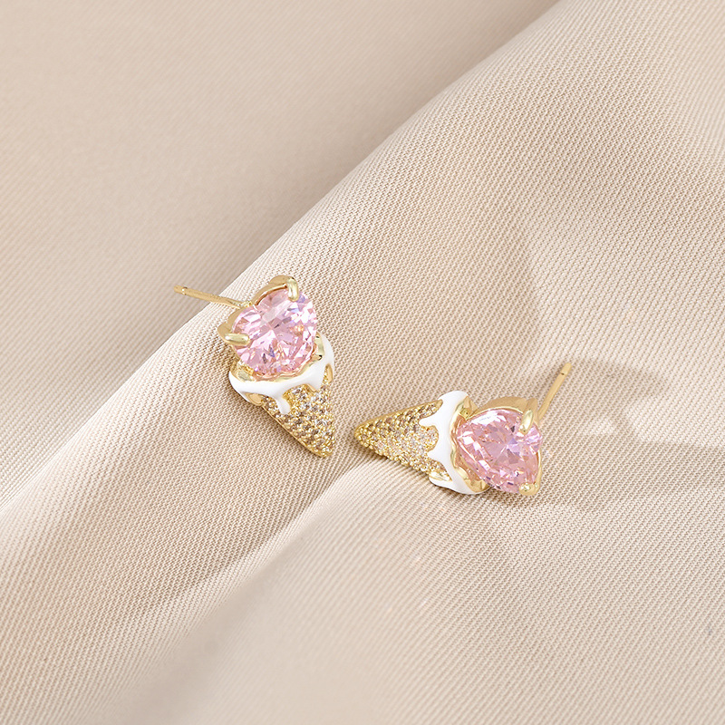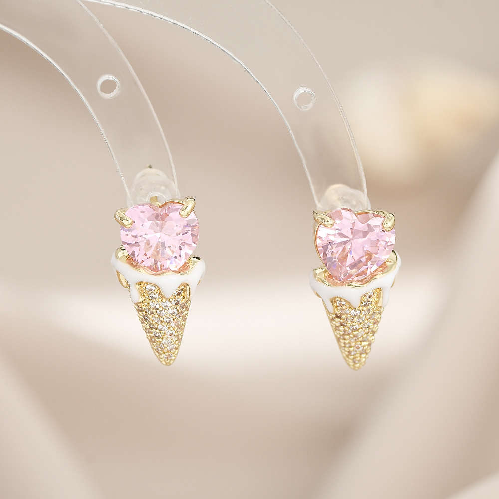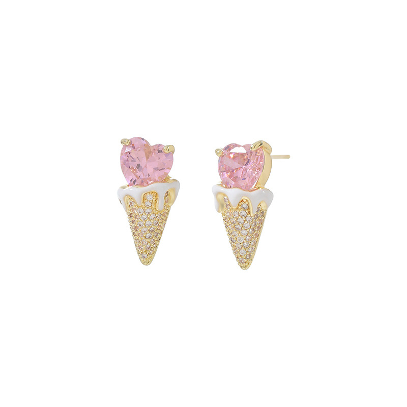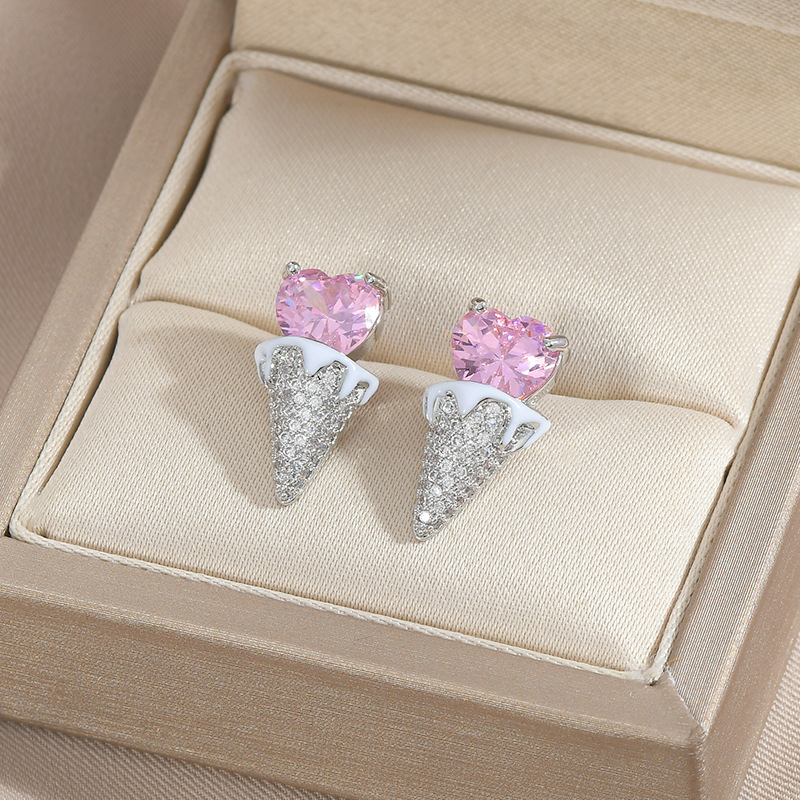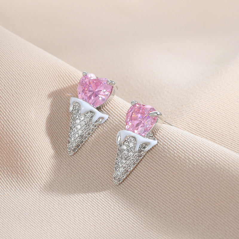 爱心甜筒冰淇淋雪糕锆石耳钉s925银针冰激凌耳环可爱趣味时 尚耳 English | 投诉