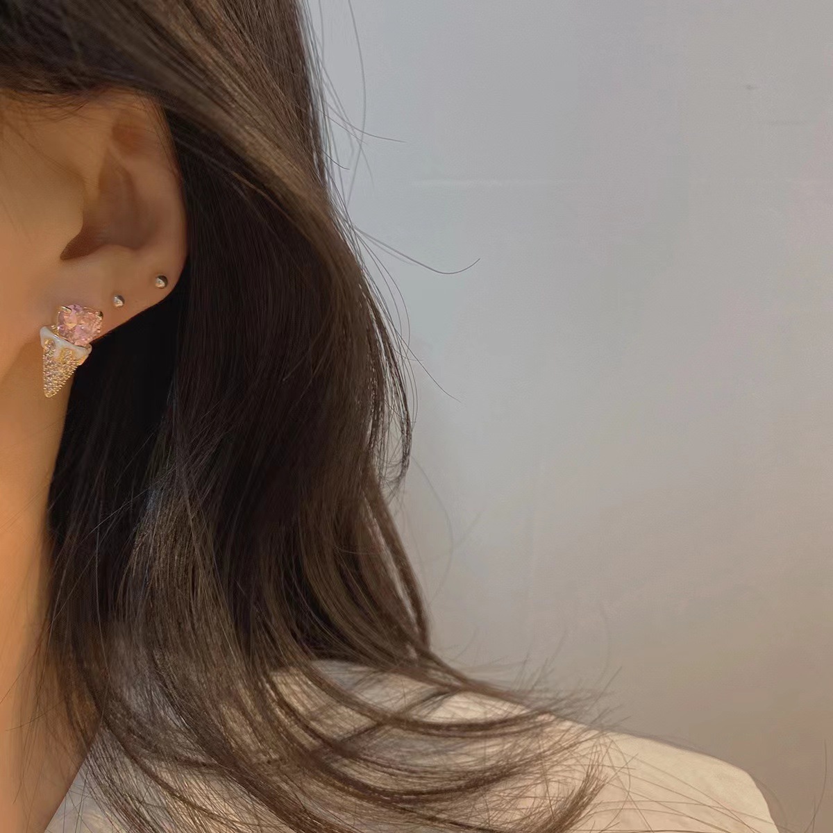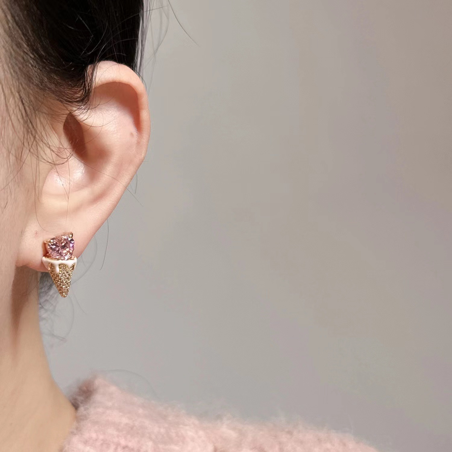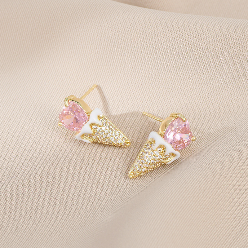 爱心甜筒冰淇淋雪糕锆石耳钉s925银针冰激凌耳环可爱趣味时 尚耳 English | 投诉