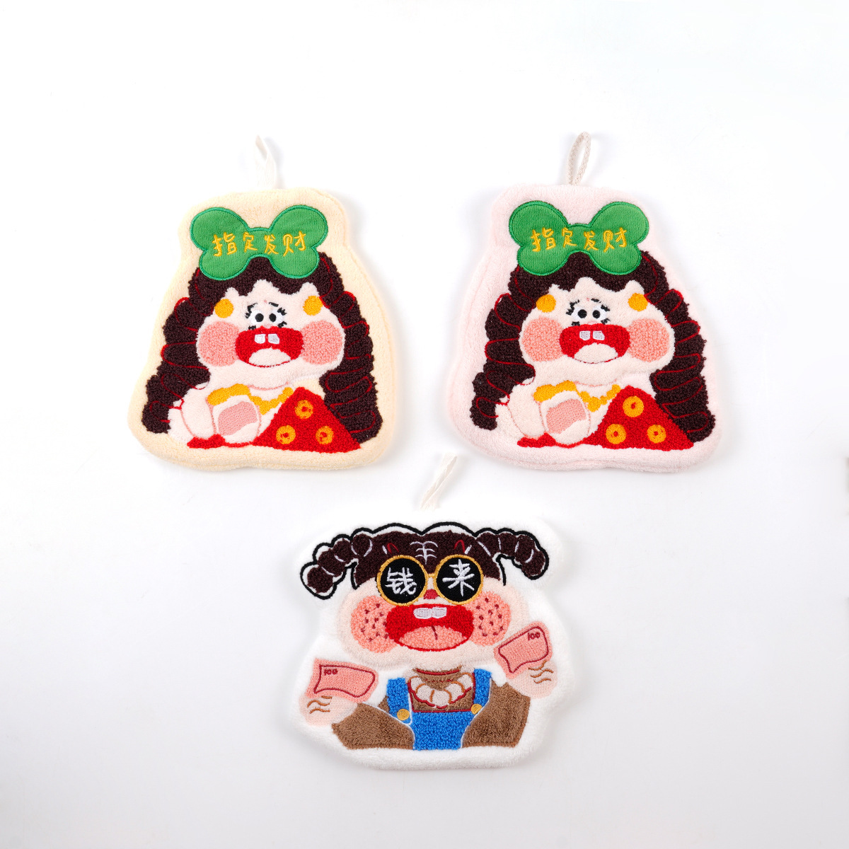 卡通刺绣擦手巾挂式珊瑚绒加厚吸水不掉毛厨房抹布巾儿童毛巾布艺